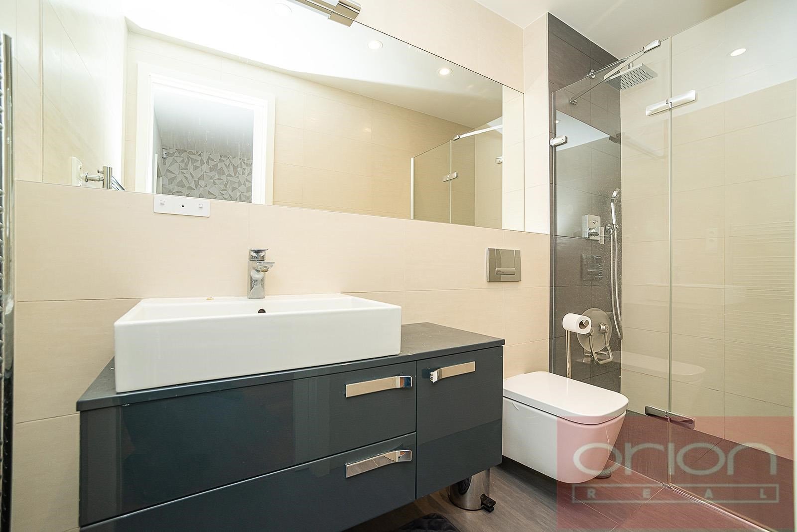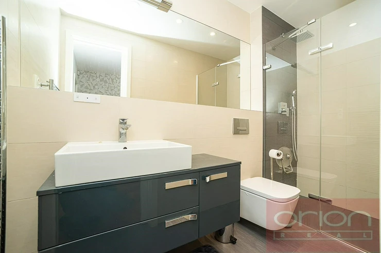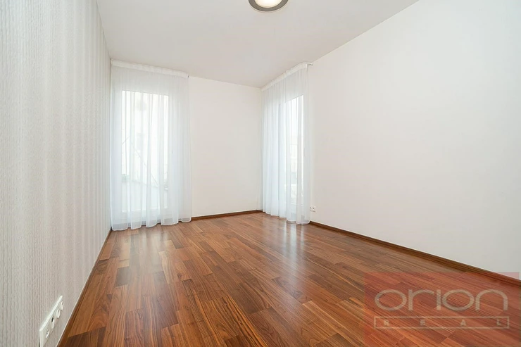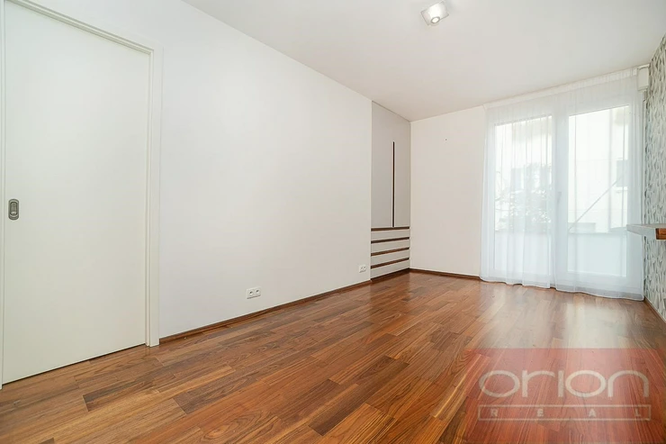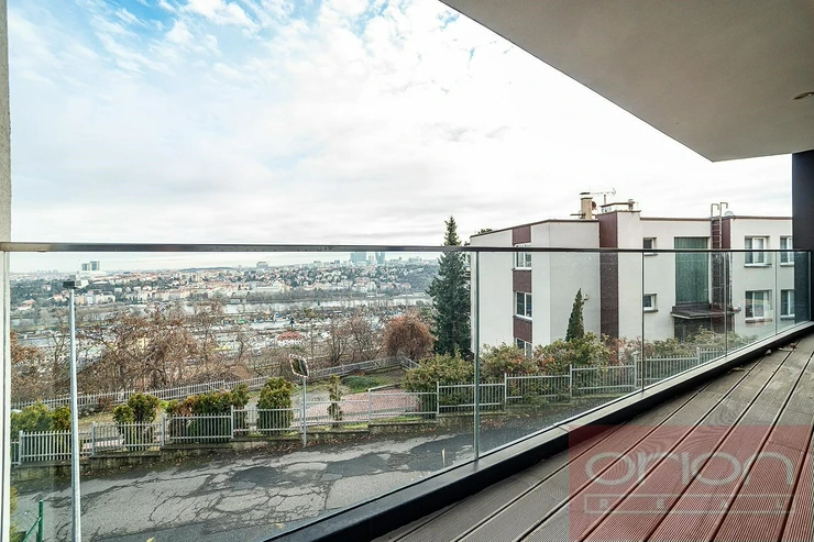 We offer for rent a spacious two bedroom apartment with a terrace located on the 1st floor of the new modern residential building Villa City View in Prague 5 - Smíchov. The apartment with a total area of 96.5 sqm offers an entrance hall with storage space, a large living room with a dining area and a kitchen and access to the terrace with a beautiful view of the city, 2 bedrooms, of which the master bedroom has its own bathroom with a shower and toilet, as well as a second bathroom with a bathtub and toilet. The bedrooms have built-in wardrobes, the living room is equipped with a designer shelving system. The modern kitchen is equipped with appliances, a Küppersbusch hob with the Vok system, a fridge with freezer, a dishwasher and an oven. The floors are high-quality parquet and tiles. The apartment is equipped with external blinds in all rooms, has a security door, an alarm and includes one garage space in the underground garage, one outdoor parking space and a large storage. The house is situated in a quiet area of Prague 5, offering plenty of privacy and pleasant living. Excellent connections by car and public transport to the Anděl shopping centre, where there is a metro and tram station, to the city centre, to Václav Havel Airport, to international schools. Available from March 1. 2026, viewings by request.