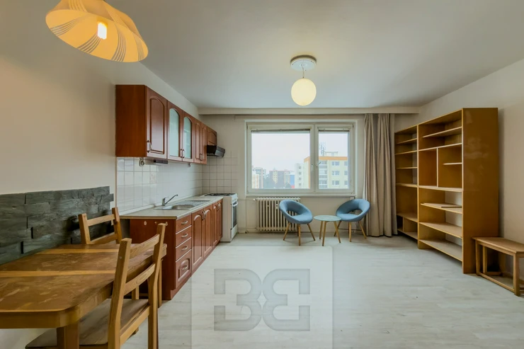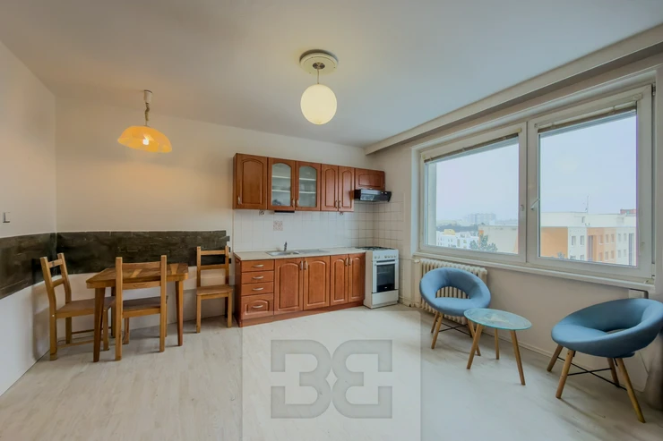 We exclusively offer for long-term rent a bright 2+kk apartment with a total area of 38 m², located in a quiet residential area of Prague 8 – Čimice. This west-facing apartment is situated on the 7th floor of a panel building and offers a beautiful, unobstructed view of the surrounding landscape.