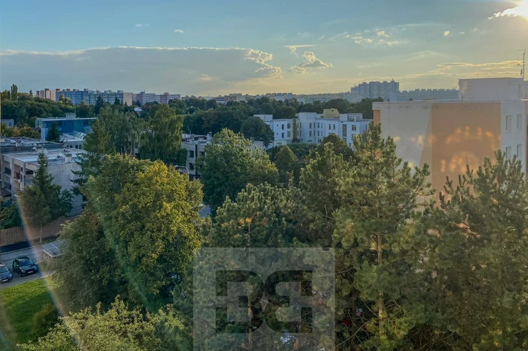 The apartment is equipped with a kitchen unit including a gas stove, living room furniture (see photos), a bed frame in the bedroom, and a washing machine. Thanks to large windows and its higher-floor location, the apartment is very bright. The windows are fitted with external roller blinds that help prevent overheating during the summer months. The apartment also includes a storage room / walk-in closet.