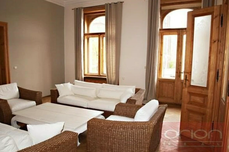 We offer for rent an atypical luxury three bedroom apartment on the 3rd floor of an Art Nouveau building with an elevator, located in an attractive residential district of Prague 2 - Vinohrady opposite the Vinohradsky Theatre building, just a few meters from Náměstí Míru. The partially furnished apartment with a total area of 171 sqm offers an entrance hall, a spacious living room with access to a balcony, a fully equipped kitchen, a dining room, 3 bedrooms, 2 bathrooms (one with a bathtub and one with a shower and toilet) and a storage room with a washing machine and dryer. The apartment features wooden parquet floors, marble tiles in the bathrooms, high ceilings, security doors, internet, satellite. The location has excellent transport accessibility, civic amenities, there are many restaurants, cafes, bistros, shops and other services in the vicinity. A few steps from the house are tram, bus and metro stations. Wenceslas Square or Riegrovy sady park are just a few minutes walk away. Rent 3200 EUR per month, possibility of renting a parking space in the underground garage for an extra 200 EUR per month.