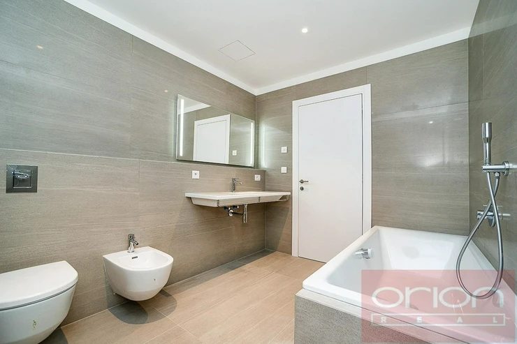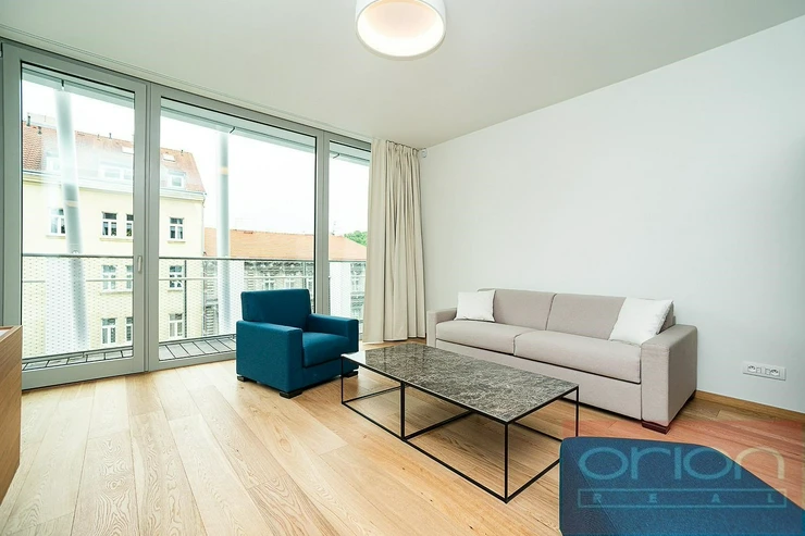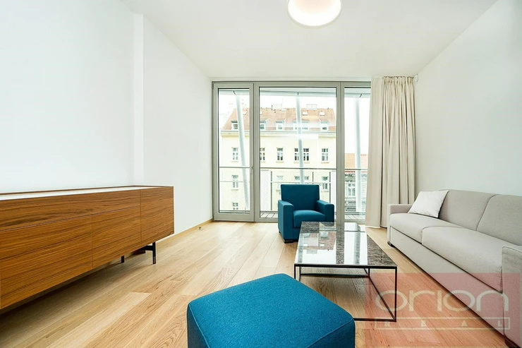 We offer for rent a modern, air-conditioned one beadroom apartment with terrace on the 3rd floor of the Ellipsis residence with reception, elevator, underground garage, wellness center, indoor pool and a large garden with parkland in the Prague 5 - Smíchov area with excellent connections to the center, the Nový Smíchov shopping center, the German and French schools. The furnished apartment has an interior with a total area of 62 sqm, offers an entrance hall, a spacious living room with a fully equipped kitchen, a bedroom, a bathroom with a bathtub, shower, toilet, bidet and a separate toilet. The apartment has a terrace of 9.48 sqm accessible from all rooms. Modern furniture, quality materials, wooden floors, large-format tiles, French windows, security doors, A/C, internet, cellar. The rent of EUR 2,200 + 12% VAT is paid in euros and includes all service charges, twice-monthly cleaning, internet and energy. Wellness membership fee 2,500 CZK/person/month. Possibility to rent a garage space for an extra fee of 230 EUR per month + 21% VAT. On the ground floor of the building there is also a fitness center Prisma Institut, which is ideal for active relaxation. Popular location Prague 5 - Smíchov with good transport connections, within walking distance of the Anděl metro and tram station, to the Petřínské sady park. By car, close access to the Prague Ring Road and the highway network. Minimum rental period 1 month.