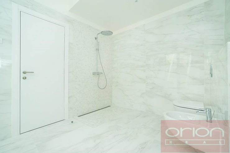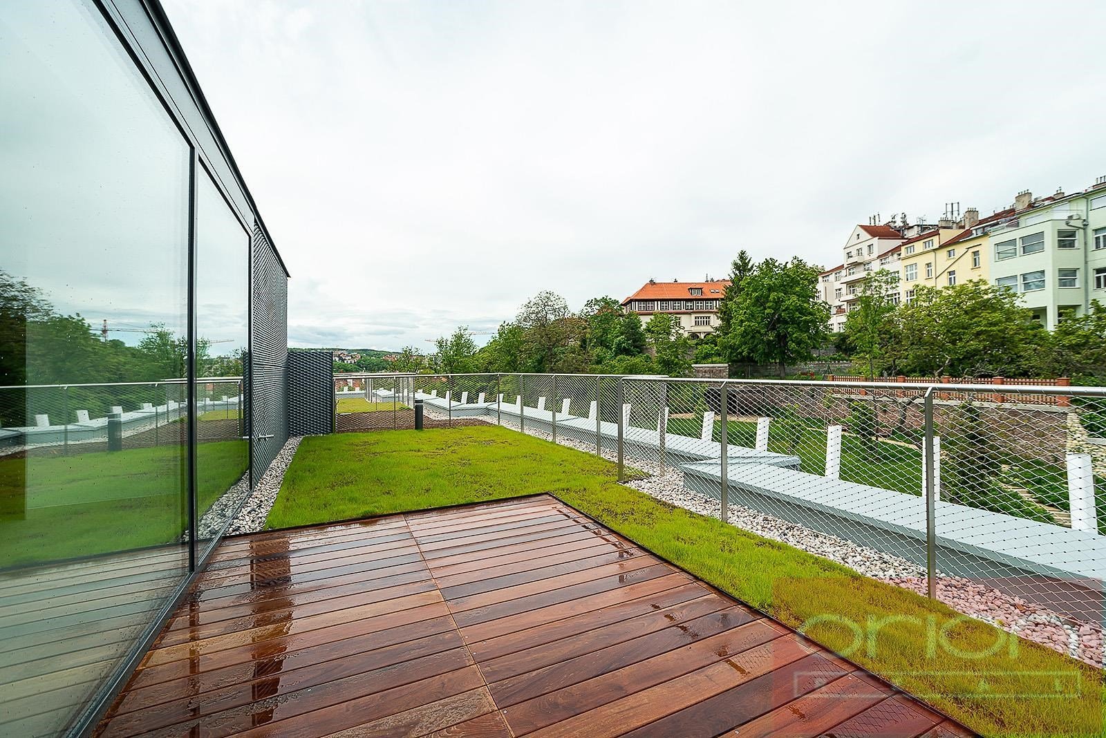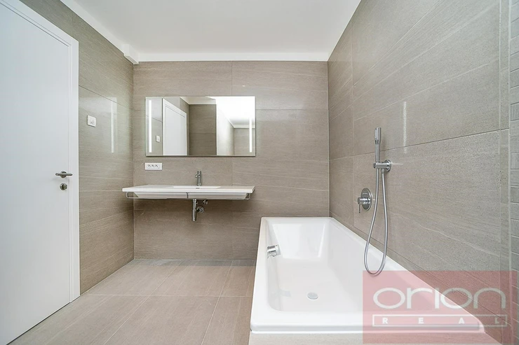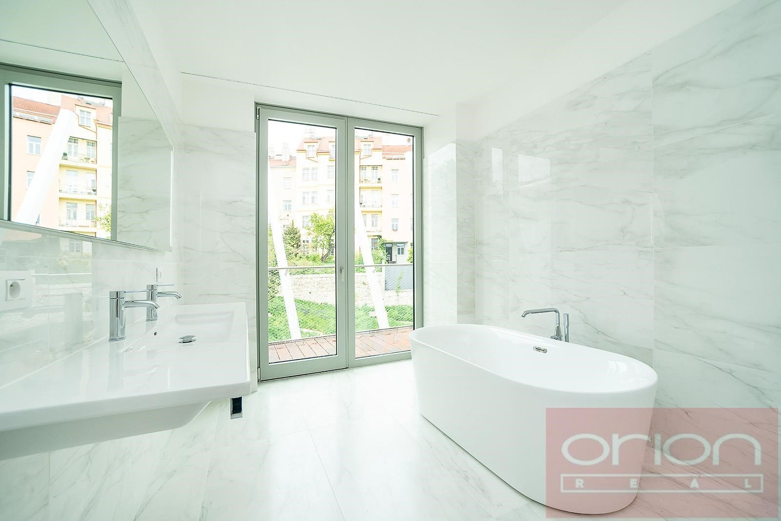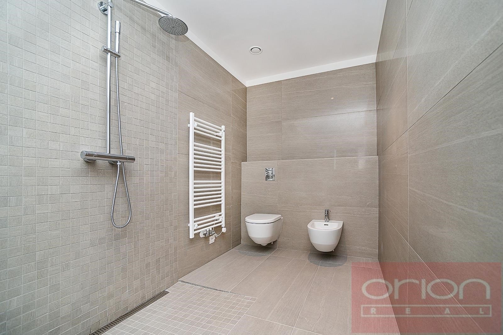 We offer for rent a luxurious three bedroom duplex apartment with three terraces and a private garden on the 5th floor of the exclusive Ellipsis Residence complex with reception, elevator, underground garage, wellness - swimming pool, sauna, and a large garden with parkland in the sought-after location of Prague 5 - Smíchov. The unfurnished apartment with a total living area of 211.7 sqm offers on the lower floor a hall, a spacious living room with a fireplace connected to the dining room and a fully equipped kitchen and with access to a terrace with a beautiful view, 3 bedrooms with access to the terrace, 2 bathrooms with a bathtub, shower, toilet, bidet (one bathroom is accessible from the bedroom), a guest toilet, a hallway and a laundry room. On the upper floor there is an open gallery (possibly a 4th bedroom) with a private wellness with sauna, a bathroom and access to a roof terrace with a garden (31 sqm). The apartment is equipped with high-quality oak floors, large-format tiles, French windows, security doors, internet, air conditioning, washing machine, dryer. The apartment has a cellar. Rent 5,400 EUR payable in euros + fees 150 CZK/m2 of the apartment + 21% VAT + extra membership fee 2,500 CZK/person/month for using the Wellness with an indoor pool and sauna directly in the apartment project. Possibility of renting a garage space for a fee of 230 EUR + 21% VAT/month. Popular location Prague 5 - Smíchov with excellent transport connections, within walking distance of the Anděl metro and tram station, the Nový Smíchov shopping center, the German and French schools. By car, close access to the Prague Ring Road and the highway network.