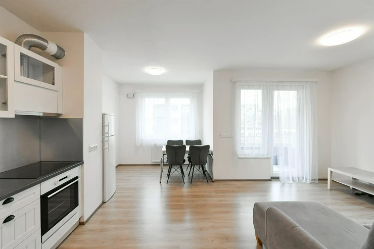 We offer for rent a fully furnished apartment with a balcony in the residential project "Čtvrť Emila Kolbena" on Svatošových Street. This 1 bedroom apartment, with an area of 56 sq.m., is situated on the 4th floor of a new, multifunctional project with underground parking.
