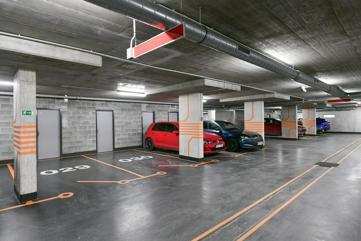 The rental includes one parking space and a cellar. The rent is 25,000 CZK per month + 5,000 CZK for utilities including electricity.