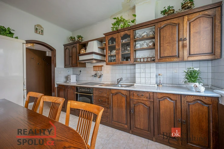Po vstupu do bytu bezpečnostními dveřmi se dostanete do chodby, kde najdete botník, věšák na míru a vestavěnou skříň. Z chodby se můžete dostat do obývacího pokoje, dětského pokoje, ložnice, samostatné toalety, koupelny a komory, kde je místo pro pračku a úložný prostor. Prostorný obývací pokoj je šikovně propojený s kuchyňským koutem s masivní dřevěnou linkou, jídelním stolem a vstupem na balkón. V ložnici a dětském pokoji najdete plovoucí podlahu a v obývacím pokoji pak dubové parkety.