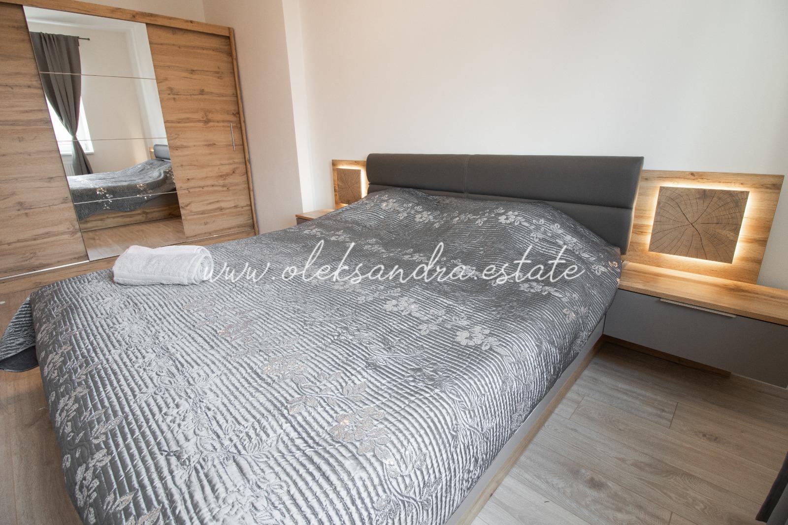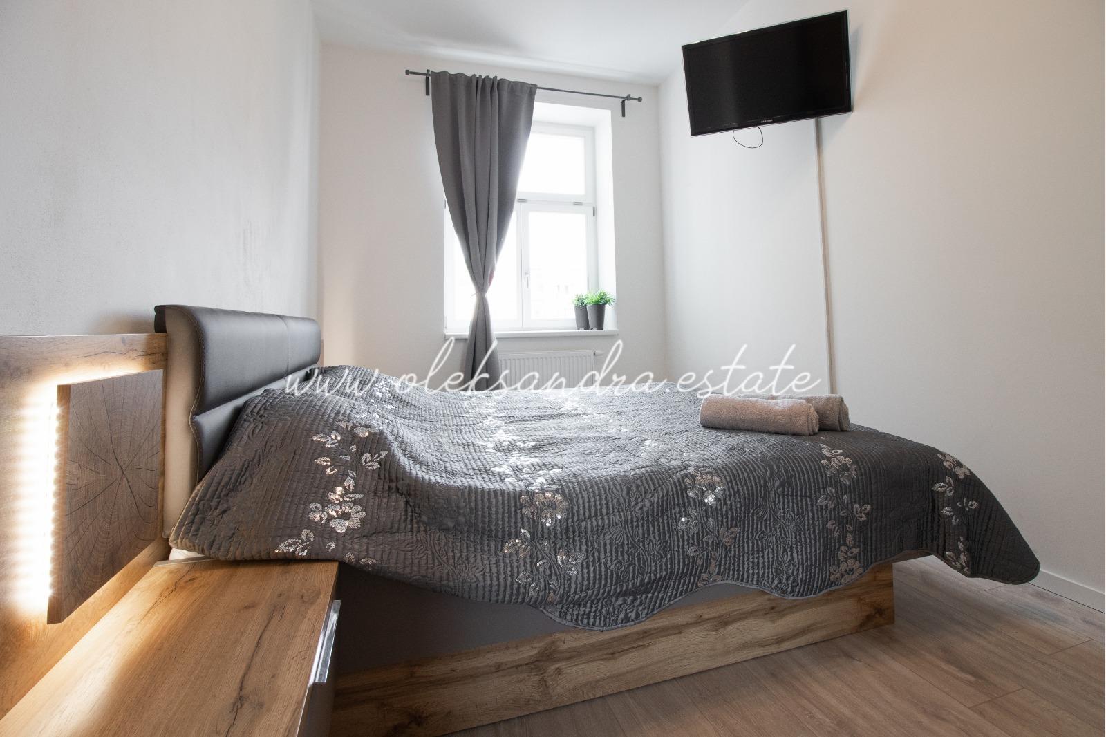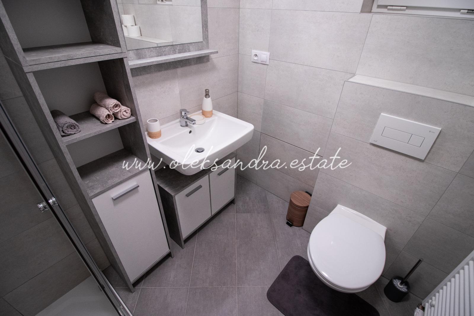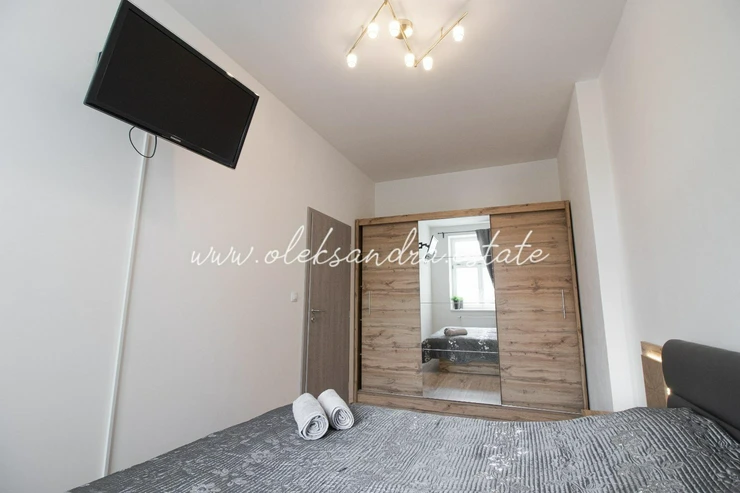 Byt se nabízí plně vybavený. Kuchyně disponuje lednicí, elektrickou troubou, varnou deskou, digestoří a jídelním stolem se židlemi. Součástí ložnice je postel s nočním stolkem a šatní skříň. V koupelně je sprchový kout, umyvadlo a toaleta.