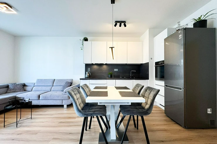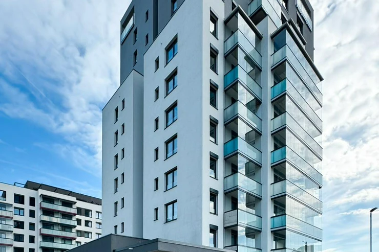 GLJ Partners exclusively offers for long-term rent a luxury 2+kk apartment with a total area of 62 sqm, located on the 5th floor of a modern new building with parking facilities in the desirable area of Prague 9 Hloubětín, Laponská Street. The apartment includes a balcony of 6 sqm and a cellar.