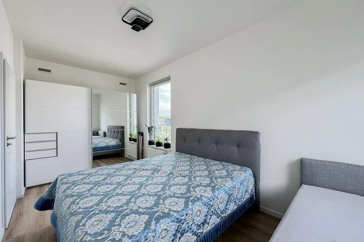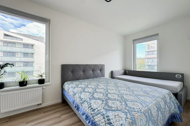 The apartment is situated in a quiet and modern part of Hloubětín with full civic amenities nearby. The Nový Hloubětín tram stop is approximately a 2-minute walk from the building. The surrounding area offers a gated childrens playground, pharmacy, post office, restaurants, supermarkets, fitness centers and cafés.