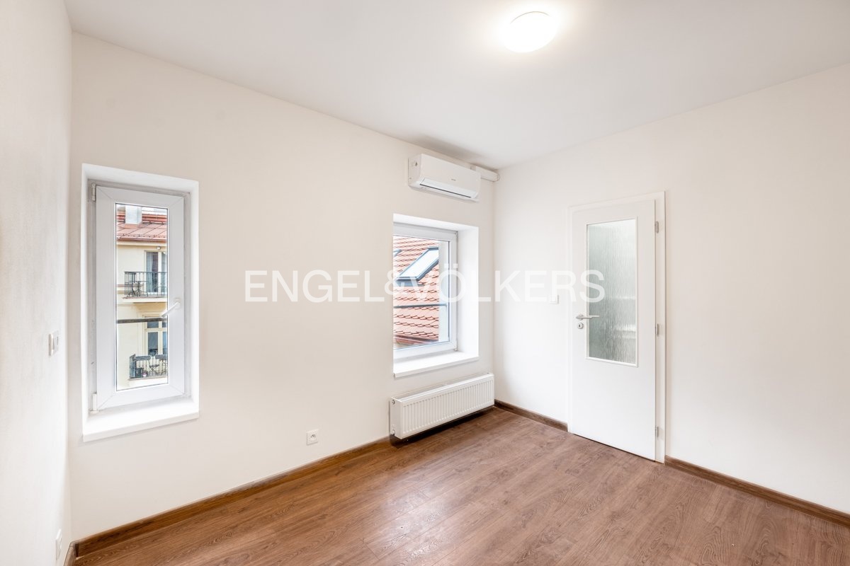 We offer for rent a spacious and completely new 74 m² 2+kt designer apartment with two bathrooms, located in a quiet courtyard on Soukenická Street in the very centre of Prague 1. The apartment has undergone a complete renovation and is waiting for its first tenant. The interior is designed in a modern, timeless style with an emphasis on quality, functionality, and detail. It includes air conditioning, individual heating with digital control, a custom-made kitchen with all built-in appliances, built-in wardrobes, and plenty of natural light. The apartment is located on the 5th floor of a historic building without an elevator.