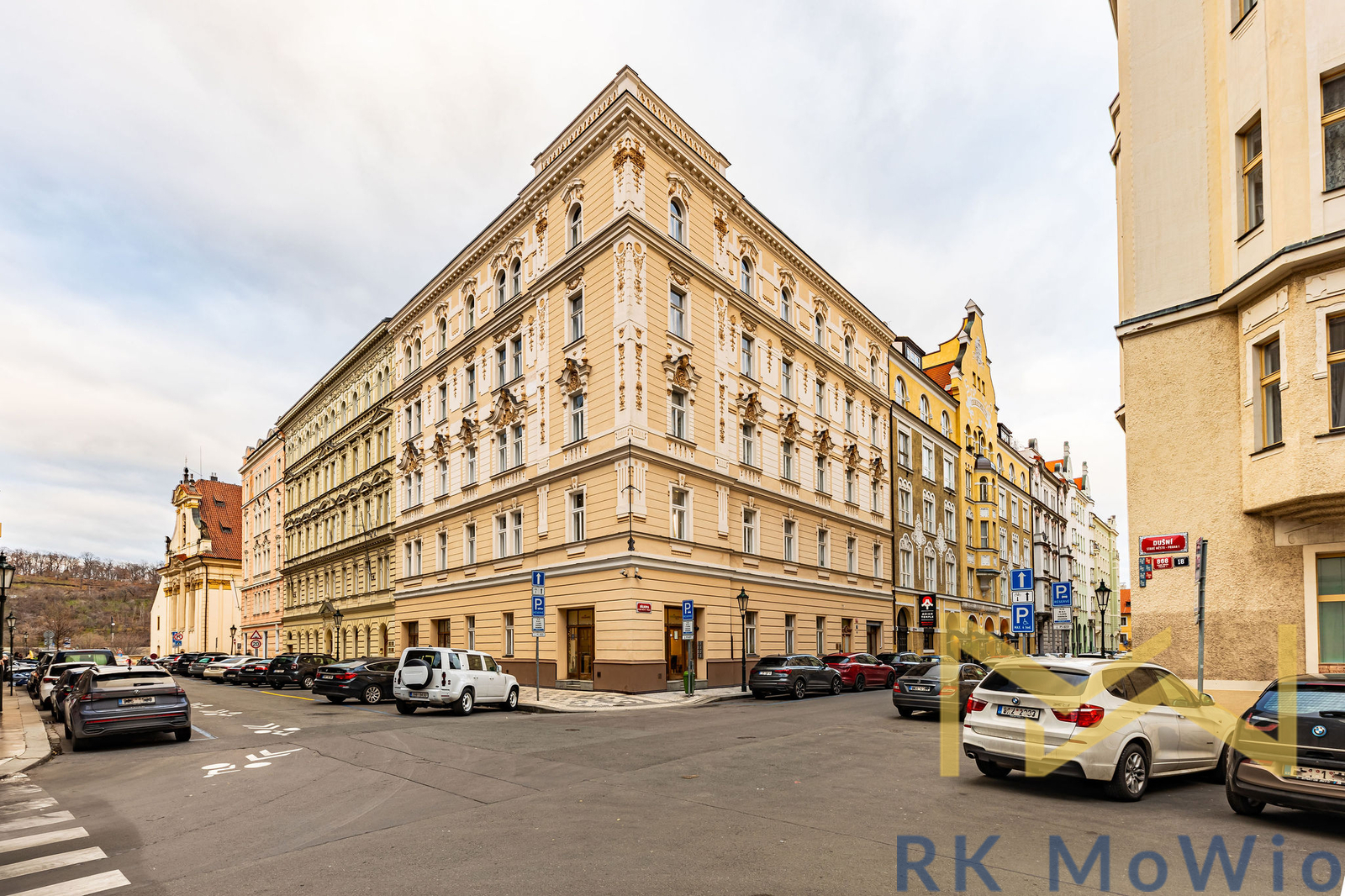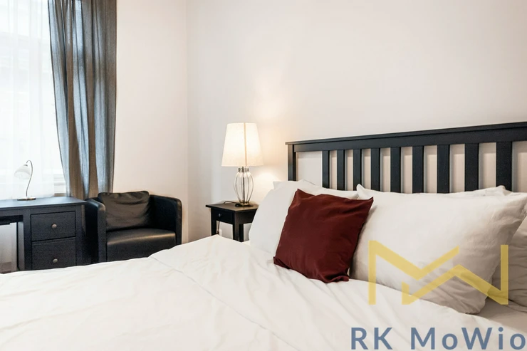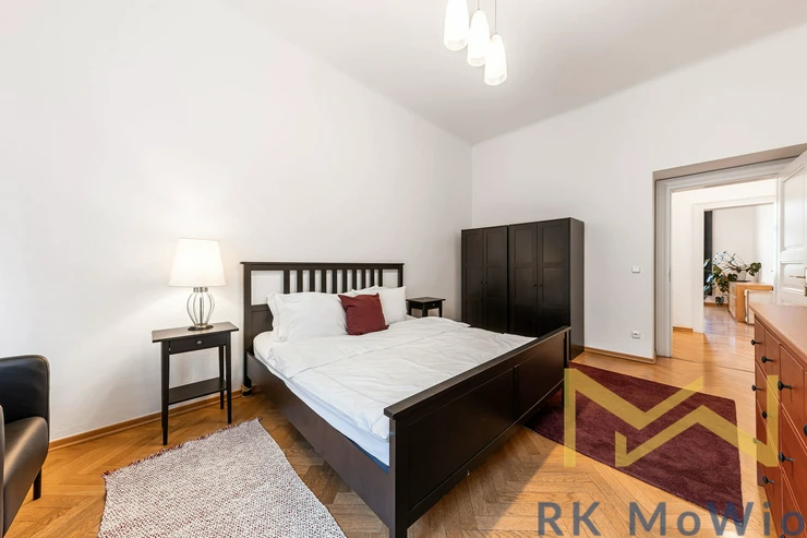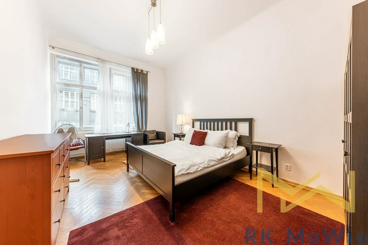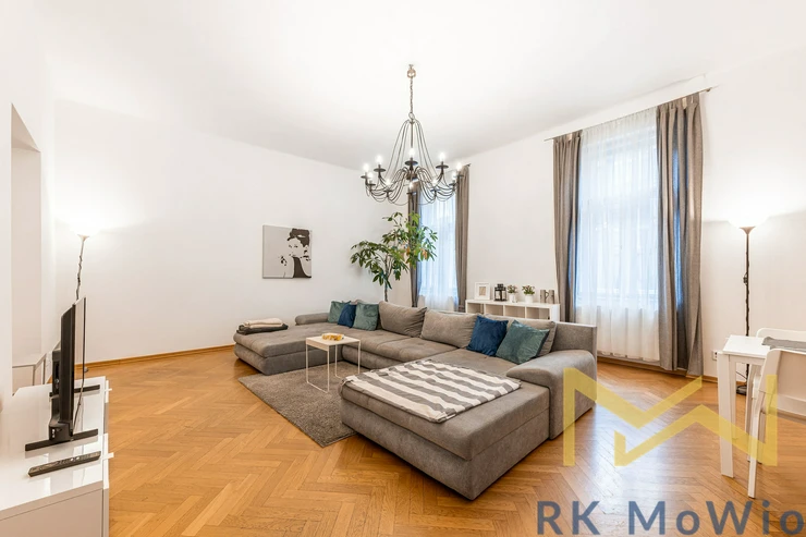 We offer for rent a classic furnished 2-bedroom apartment with a floor area of 117 sqm, located on the 3rd floor (4th above-ground level) of a Secession-style building with an elevator on Bílkova Street, in the historic part of Prague 1 – Old Town.