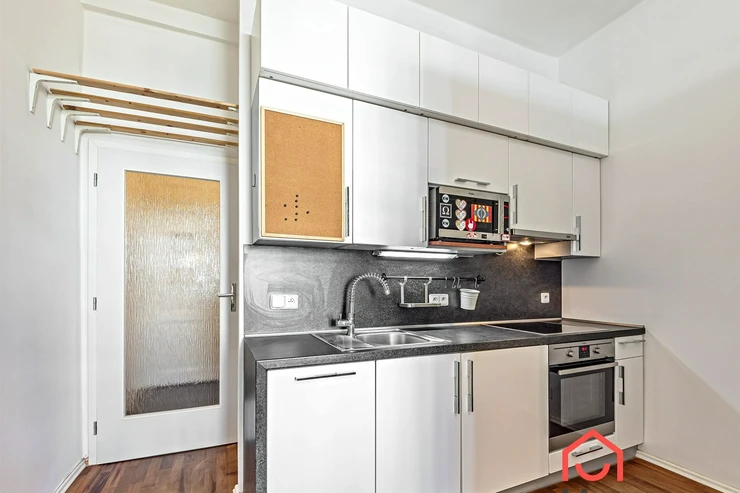 We offer for rent a cozy studio apartment (1+kk) located on the 3rd floor of a brick building with an elevator in Prague 10 – Vršovice.