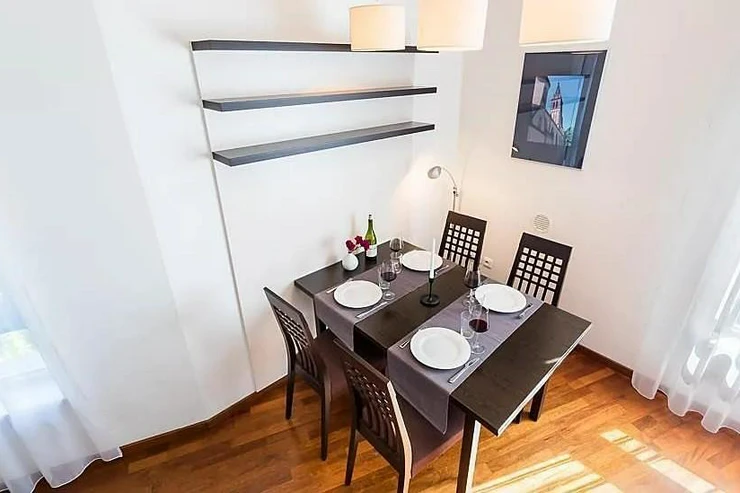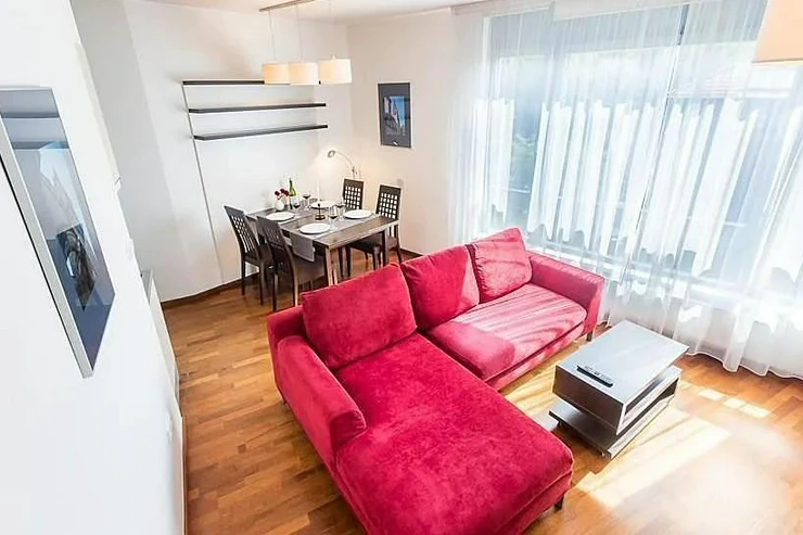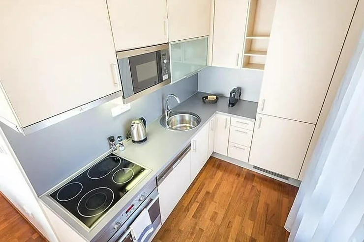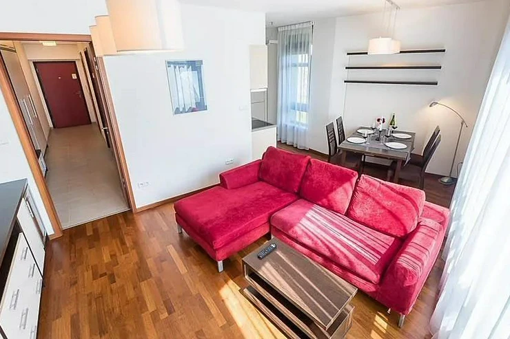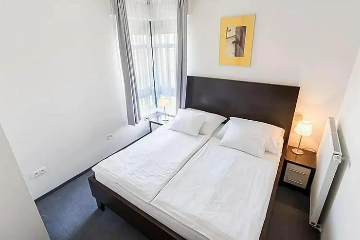 High-quality wooden floors with underfloor heating, satellite TV, fast internet and regular cleaning are a matter of course and already included in the rent. The apartments on the upper floors are equipped with air conditioning. The apartment and #39;s southeast orientation offers a view of the vineyard and the illuminated Vyšehrad wall.