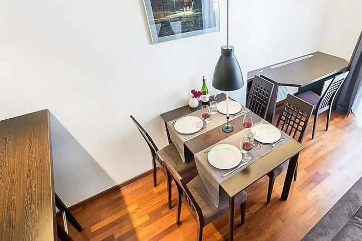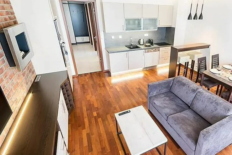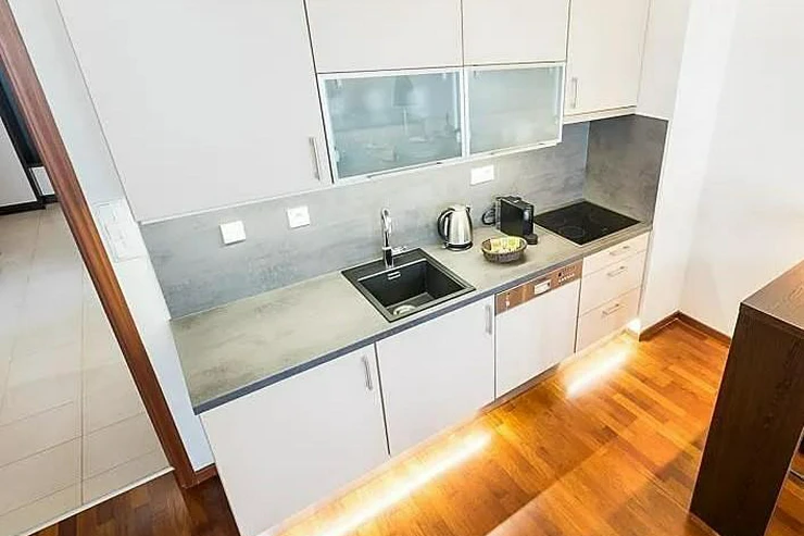 High-quality wooden flooring with underfloor heating ensures high comfort. The apartment comes with high-speed Wi-Fi connection, which is already included in the rent. Air conditioning is available in apartments on the top floors.