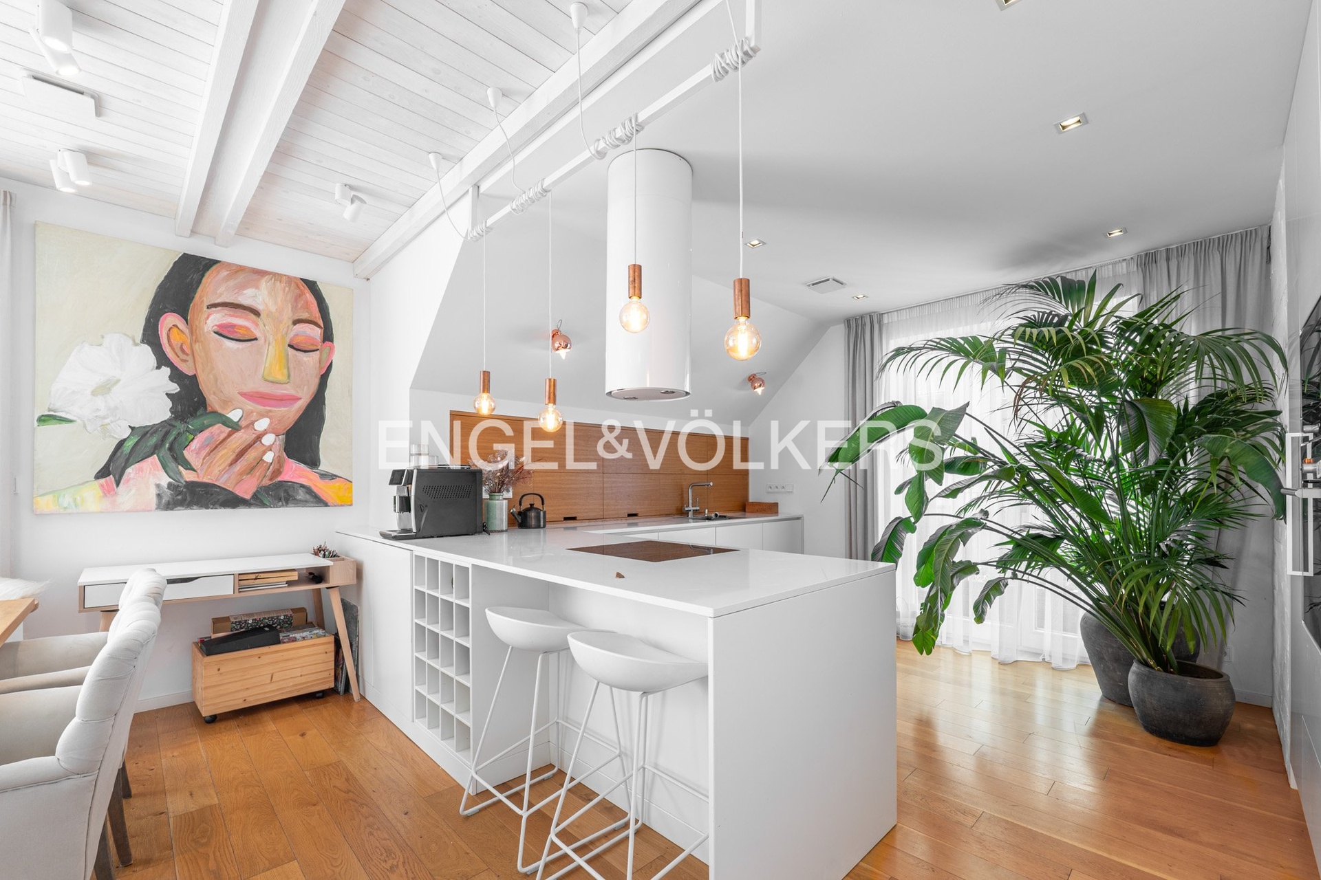 The apartment is equipped with heat recovery ventilation, solid wood floors, tiling, security entrance doors, built-in storage spaces, a heat pump, underfloor heating on the lower floor, and complete appliances. An alarm, video intercom, and access to the communal garden with a fireplace and space for grilling are also included.