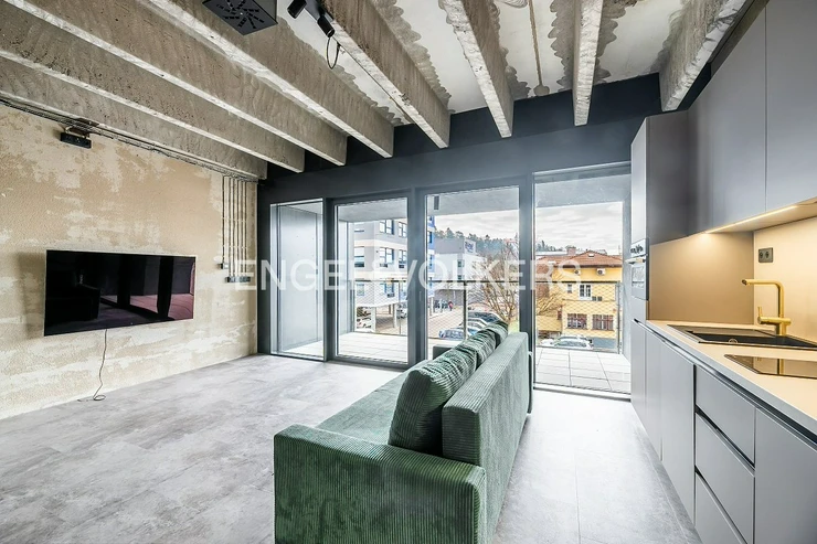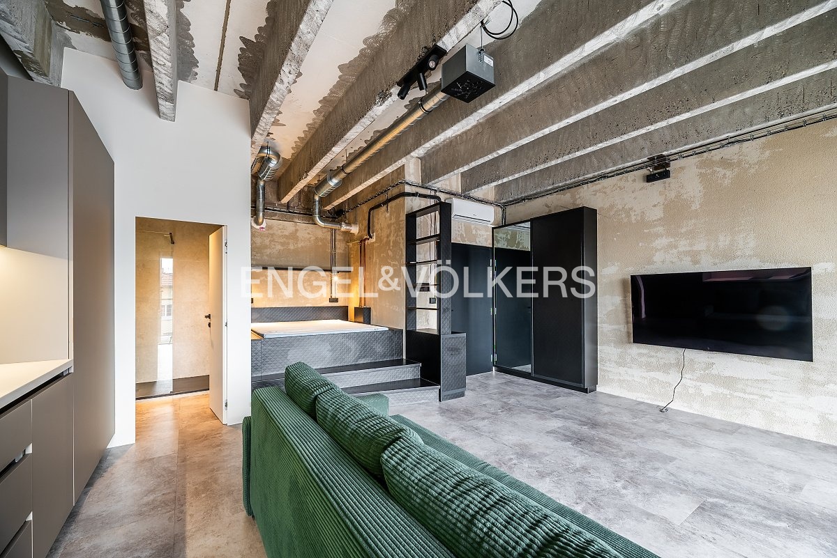 We offer for rent a designer loft unit measuring 35 m², located on the 1st floor of the iconic Vanguard Prague residential project, which represents modern living with an emphasis on style, functionality, and high standards of service.