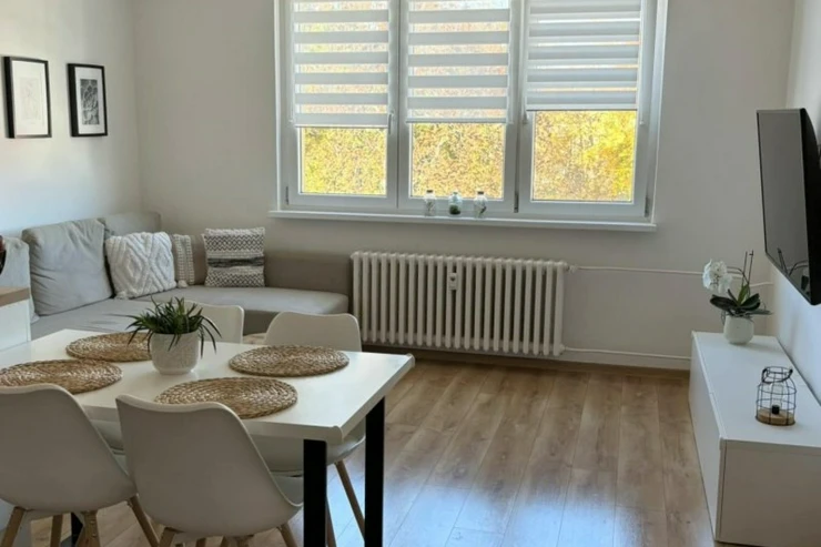 Nabízíme k pronájmu pěkný byt 3+KK s balkónem po celkové rekonstrukci v Opavě na ulici Skřivančí. Byt se situován do 4.NP panelového domu bez výtahu. V bytě je obývací pokoj s kuchyňským koutem do U, včetně vestavné myčky, trouby a mikrovlnné trouby. Dále 2 samostatné pokoje. Ložnice disponuje dvěma oddělenými šatnami. V bytě samostatná technická místnost na pračku a sušičku. Na chodbě jsou vestavné skříně. V koupelně se nachází prostorná rohová vana a umyvadlo. Toaleta je samostatně. K bytu náleží sklepní kóje. Měsíční nájemné činí 15.000,-Kč + zálohy za služby 4.300,-Kč + el. cca 1.850,-Kč. Majitel požaduje vratnou kauci ve výši dvou měsíčních nájmů. Odměna RK činní 18.150,-Kč včetně DPH.