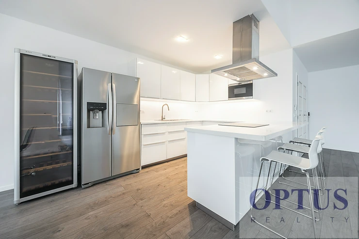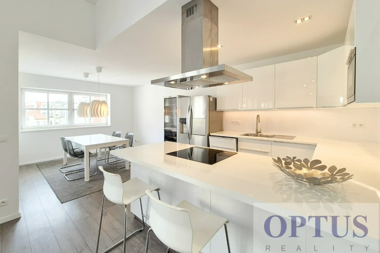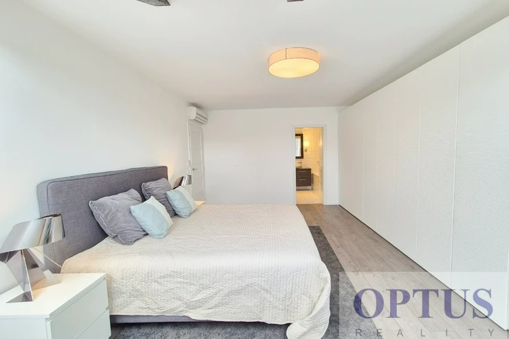 Additional equipment of the apartment: a fully fitted modern kitchen unit, washer, dryer, wardrobes, cabling for high-speed Internet (an optical cable) - the apartment has Ethernet, air-conditioning, laminated floors and pavement; floor heating - apartment is heated by a heat pump.