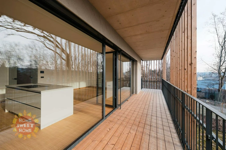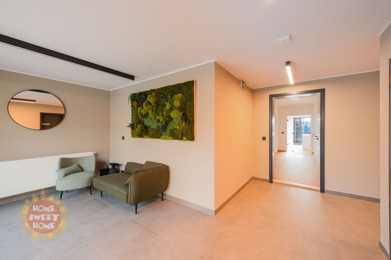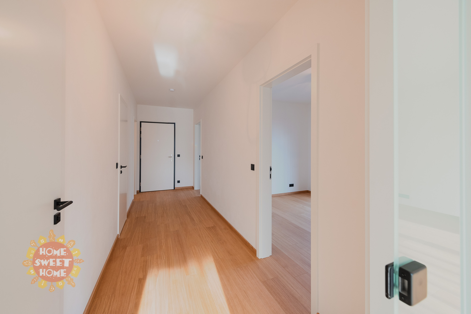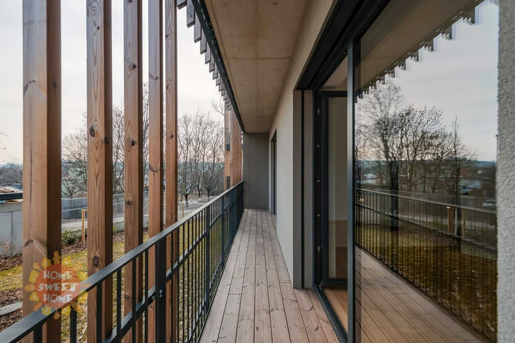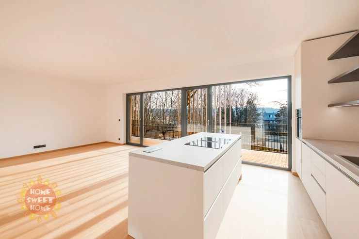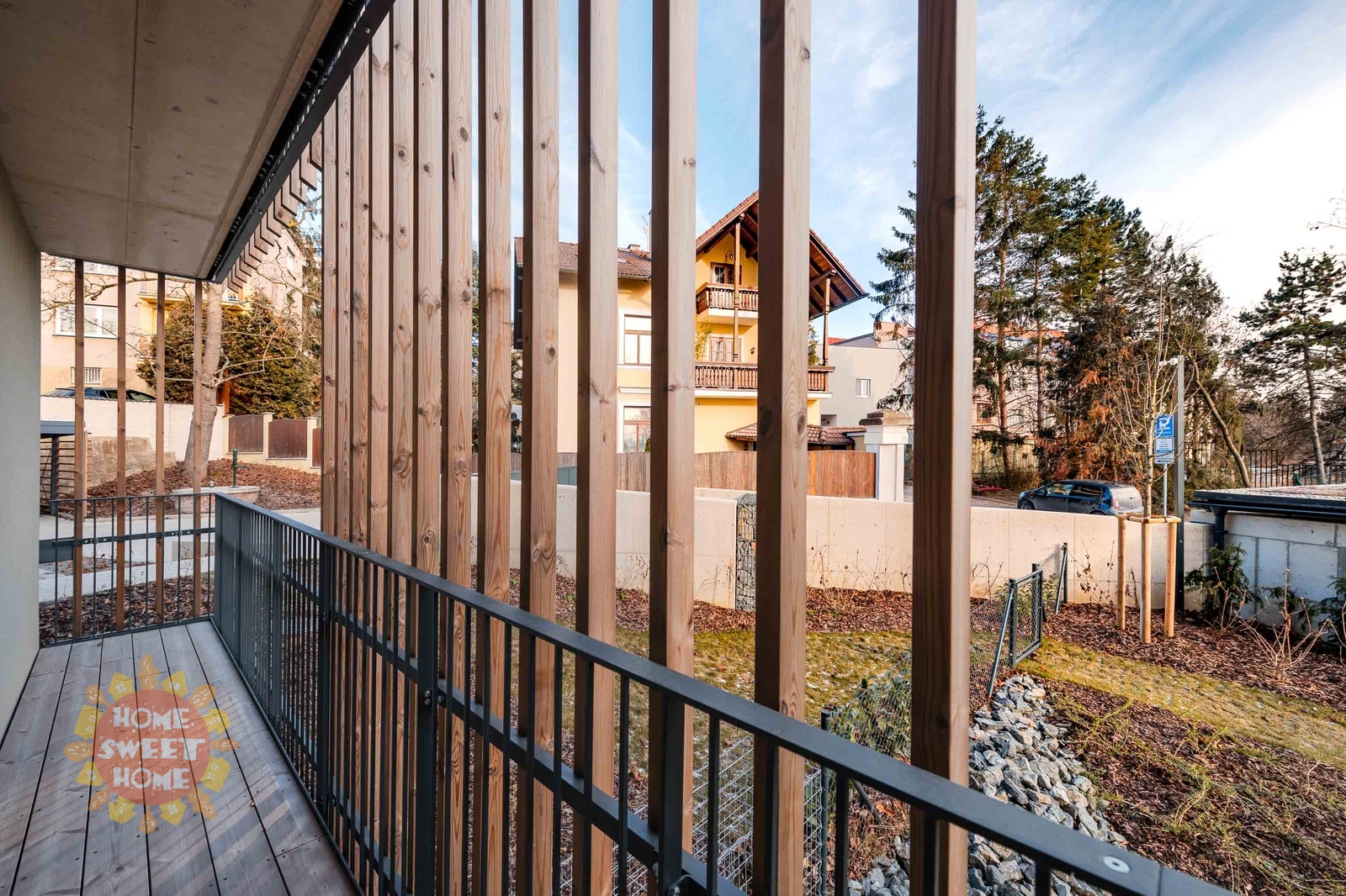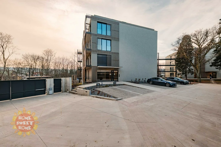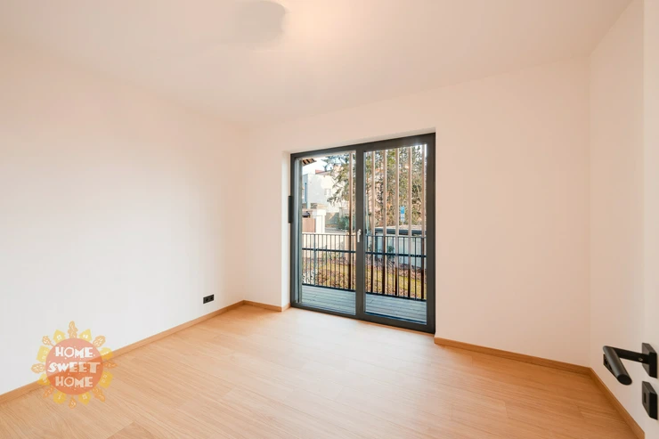 The newly completed new 3+kk apartment with an area of 82 sqm with two terraces of 17 and 11 sqm is located on the 1st floor with a view of the greenery.