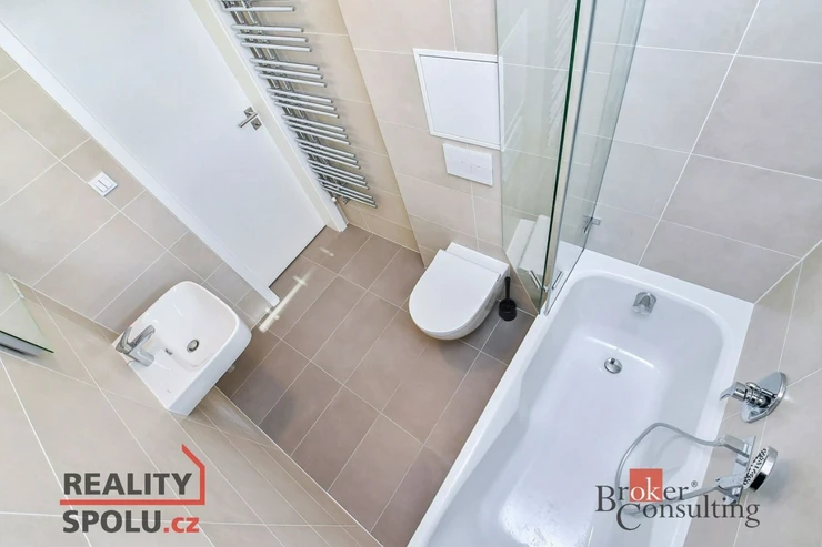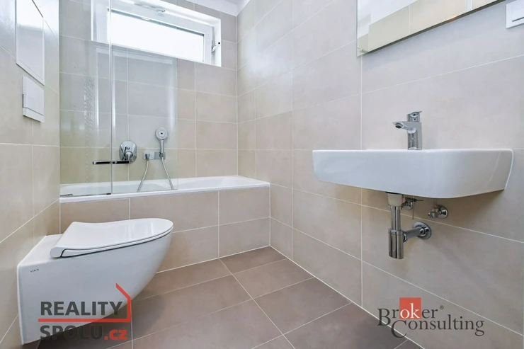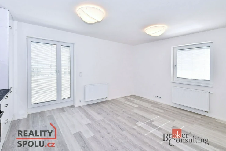 Dispozice: předsíň (6,9 m2), koupelna (3,9 m2), obývací pokoj (29 m2) s kuchyňským koutem a prostorem na spaní ). Kuchyňská linka je vybavena kompletně vestavěnými spotřebiči (lednice s mrazákem, sklokeramická varná deska, el. trouba, myčka, digestoř, mikrovlnná trouba). V bytě je vlastní plynový kotel k vytápění a ohřev teplé vody, což je velkou výhodou, jelikož můžete ovlivnit vlastní spotřebu. Dále v bytě je klimatizační jednotka a v předsíni šatní skříň, na podlaze je vinyl a v koupelně dlažba, okna jsou se žaluziemi a trojskla. Koupelna je světlá s oknem, toaletou, vanou se zástěnou a umyvadlem. Prostor na pračku je v předsíni. K bytu náleží sklep v přízemí domu a parkovací místo v samostatné garáži, již zahrnuto v ceně nájmu.
