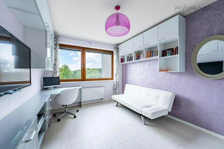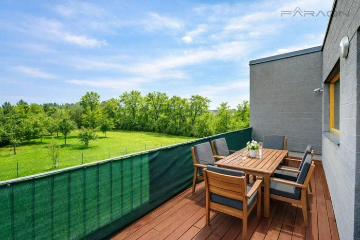 Rent of a fully furnished 3+kk apartment with a terrace and an uninterrupted view of the greenery and the adjacent natural monument Modřanská rokle, located on the 4th floor of the closed residential complex Tulipa Modřanská rokle in a quiet residential area of Modřany. The rental price includes an underground parking space. The residence is set in greenery and provides a high standard of living including 24/7 security, reception, private park, children's playground and outdoor fireplace, which complete the feeling of privacy and comfort for residents.