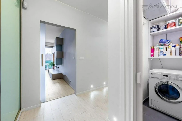 The apartment is offered fully equipped and includes a modern kitchen with appliances such as a ceramic hob, fridge with freezer, fan oven, microwave, coffee maker, kettle and washing machine with dryer. The equipment also includes floating floors, central heating and plenty of storage space. The scope and nature of the equipment corresponds to the photo documentation shown in the photo presentation of the offer.