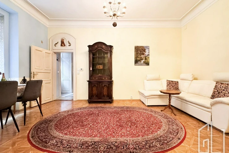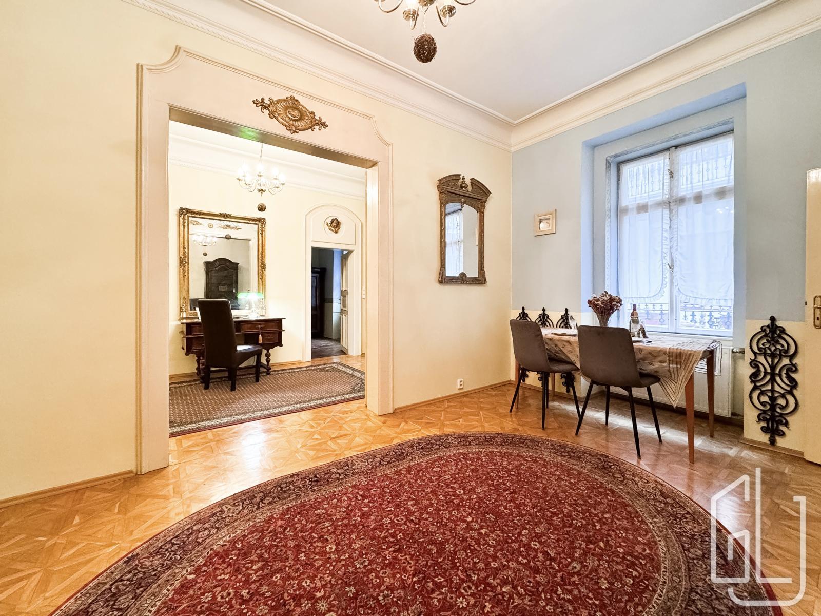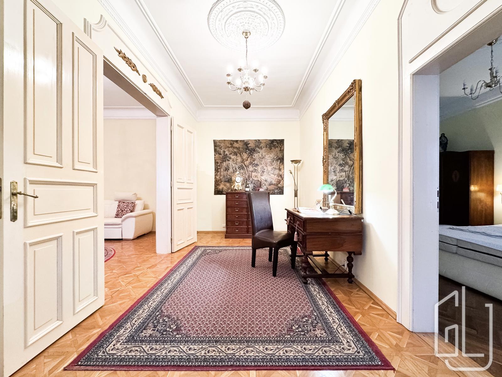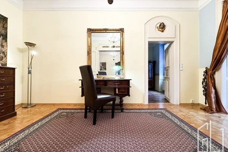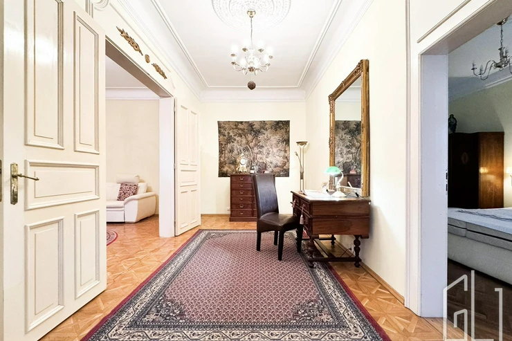 GLJ Partners offers for rent a spacious 4+1 apartment with a total area of 90 sqm and a 15 sqm balcony, located on the 2nd floor of a historic building in the highly desirable area of Prague 1 Malá Strana, Všehrdova Street.
