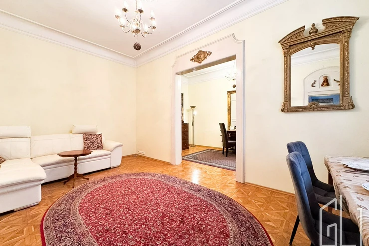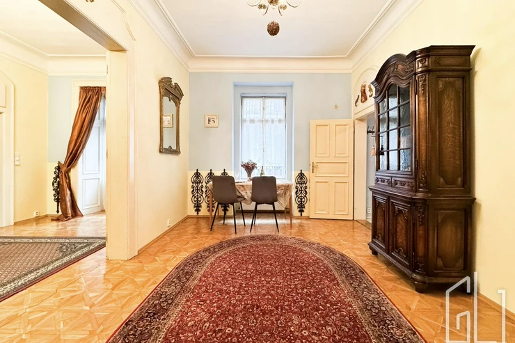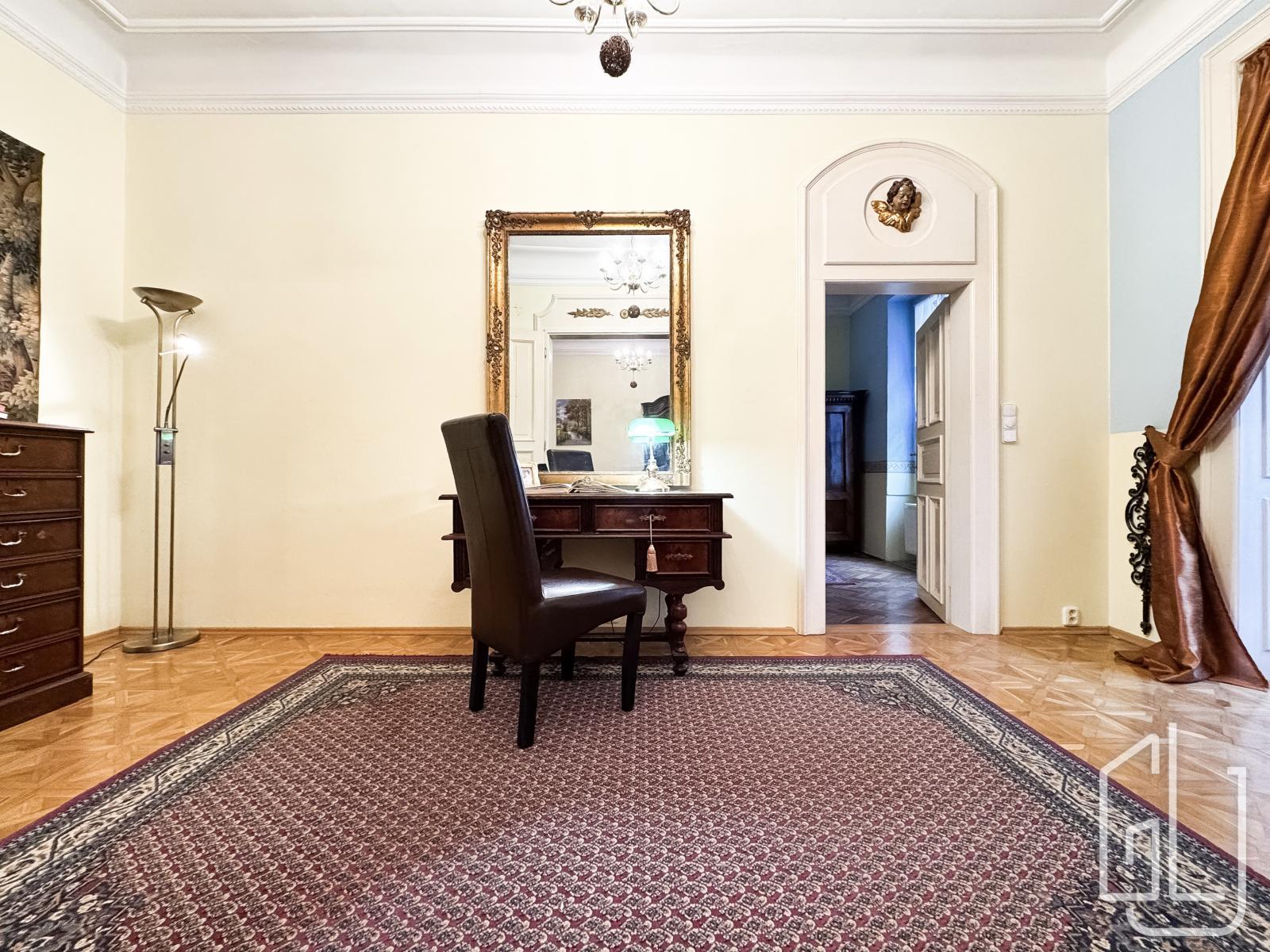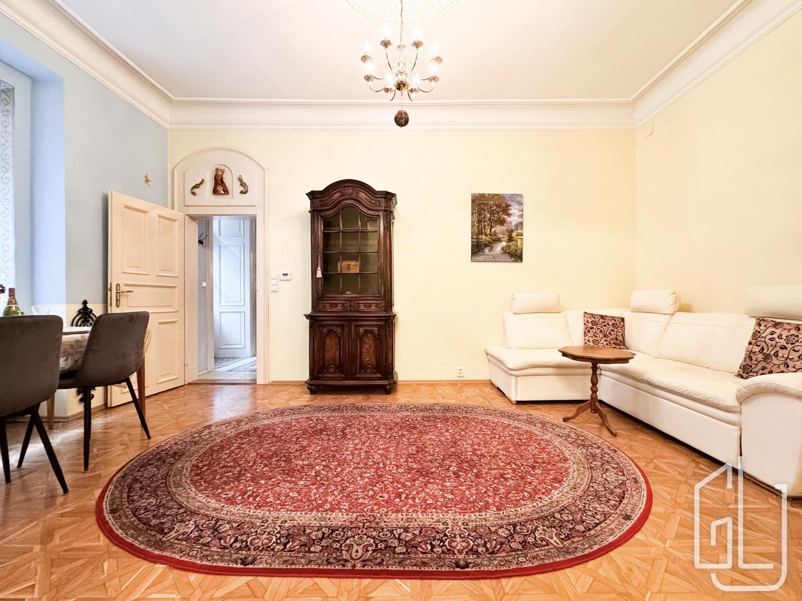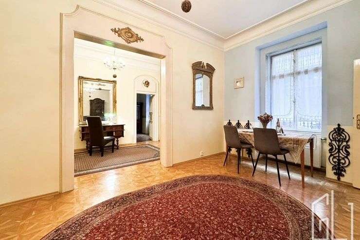 GLJ Partners offers for rent a spacious 4+1 apartment with a total area of 90 sqm and a 15 sqm balcony, located on the 2nd floor of a historic building in the highly desirable area of Prague 1 Malá Strana, Všehrdova Street.