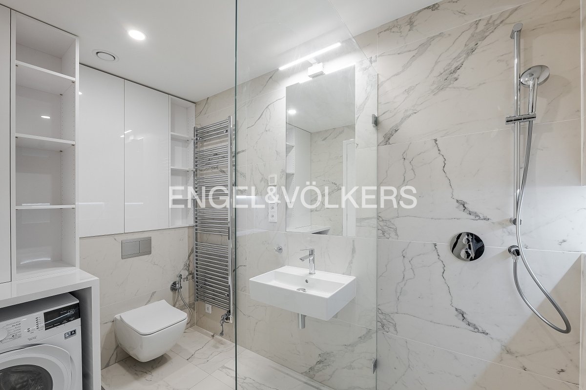 We offer a luxury 2+kt apartment for long-term rent in the sought-after residential area of Bubeneč. The apartment is in the prestigious Victoria Palace development project, which offers excellent transport links to the city centre and Stromovka Park, which is only a 10-minute walk away. The apartment has a fully equipped kitchen with all appliances, storage space, automatic outdoor blinds, air conditioning, heat recovery ventilation, and a washing machine. The residence offers a 24/7 reception, a camera system, representative common areas, and a spacious courtyard for relaxation.