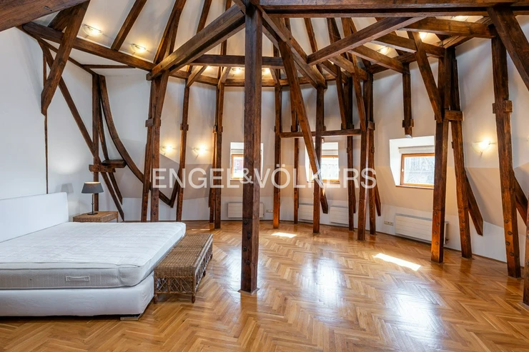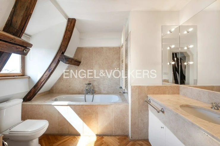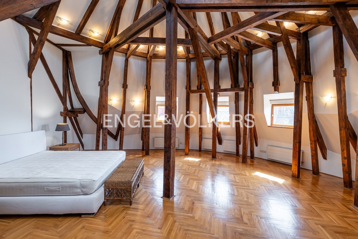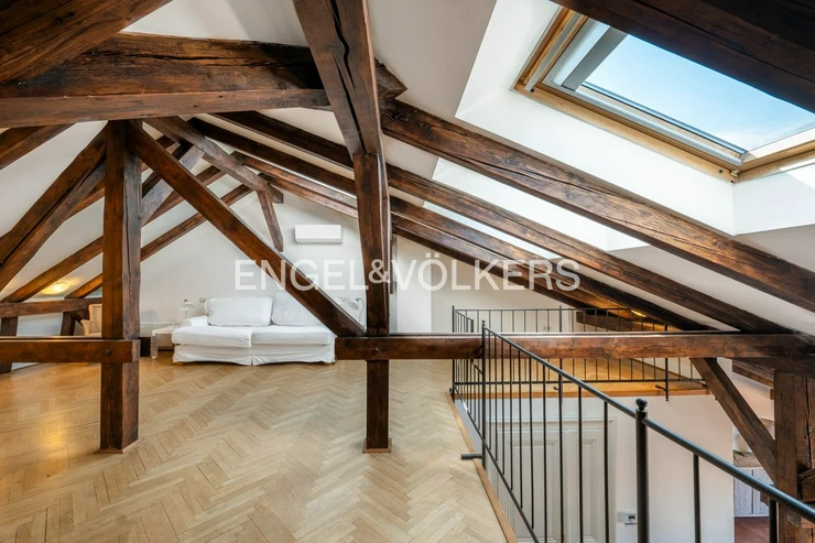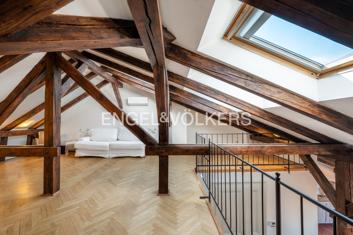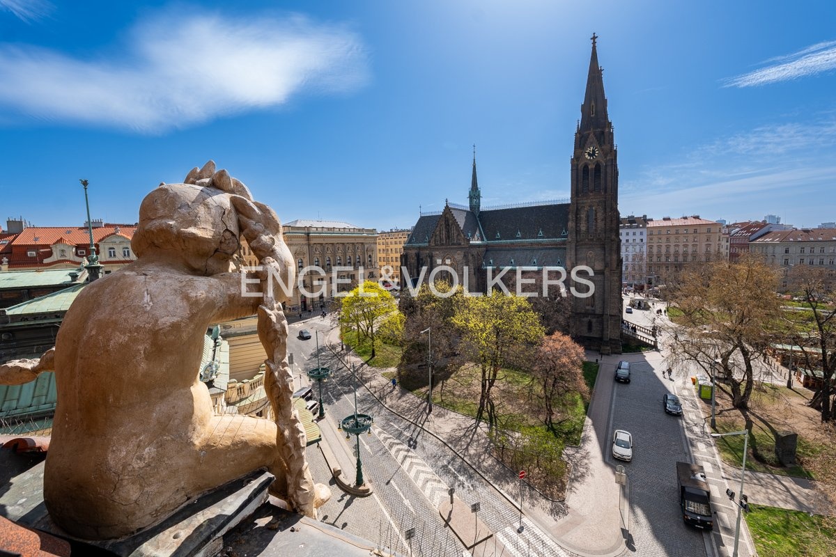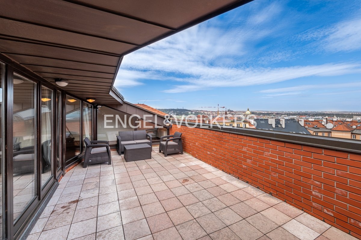 We offer for long-term rent a stylish duplex apartment 5+1 with a terrace of 24 sqm, which offers a magnificent view of Prague Castle, St. Ludmila's Church and Náměstí Míru (Square) with the adjacent park. The apartment is located on the 5th and 6th floors of a representative building after reconstruction, in a prestigious residential area of Prague, Vinohrady.