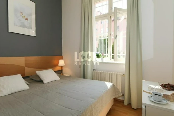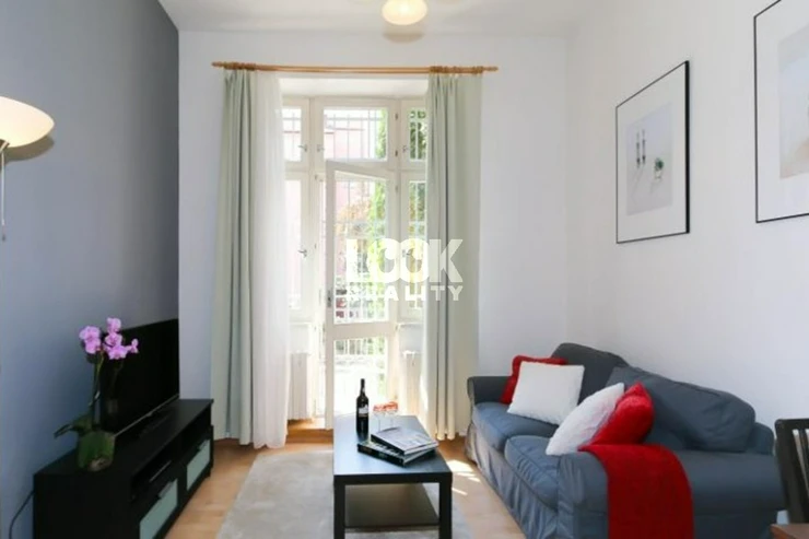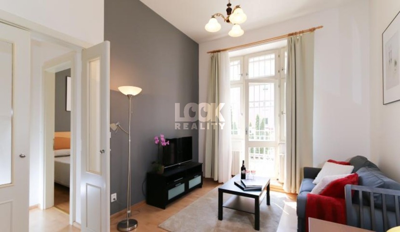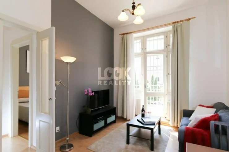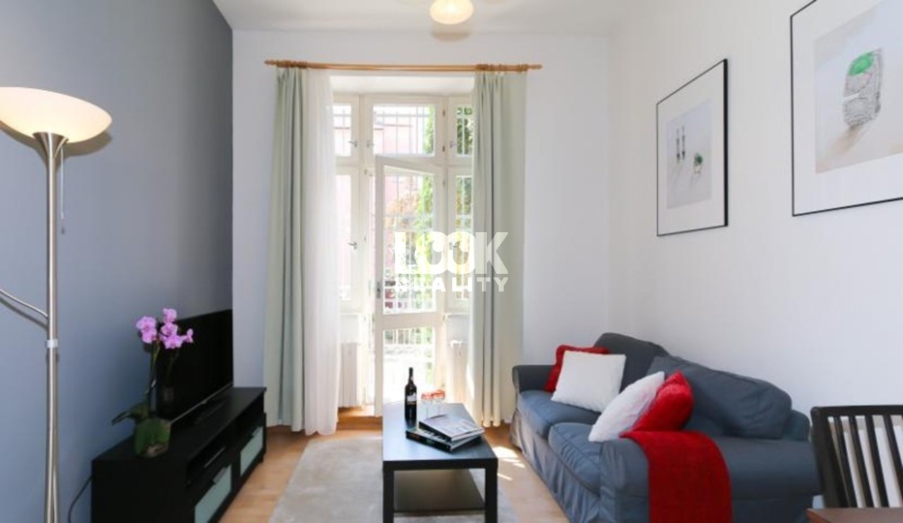 Beautiful apartment in Prague 2 - Vinohrady close to parks We offer to rent the apartment 2 + kk with an area of 42 m2 with balcony. The apartment is located on the 2nd floor with elevator in Belgicka street. The apartment is fully furnished: sofa, coffee table, dining table with chairs, wardrobes and chests of drawers, bed, bedside tables, lamps. The kitchen is fully equipped with all appliances: hob, oven, hood, fridge, freezer, dishwasher, microwave, kettle. There is a shower and toilet in the bathroom. In the flat there is a TV and internet access available. Excellent transport connection. There is a tram stop Zvonarka and metro station Namesti Miru near the apartment. There are all civic amenities: restaurants, schools, shop, libraries, theaters, pharmacy, post office, sports facilities. There are also beautiful parks - Havlickovy Sady, Bezrucovy Sady, ideal places for walks, relaxation, or sports. Very pleasant living in a beautiful location. Illustrative photo. The price for a short-term can be changed Avilable from 1. 4. 2026.