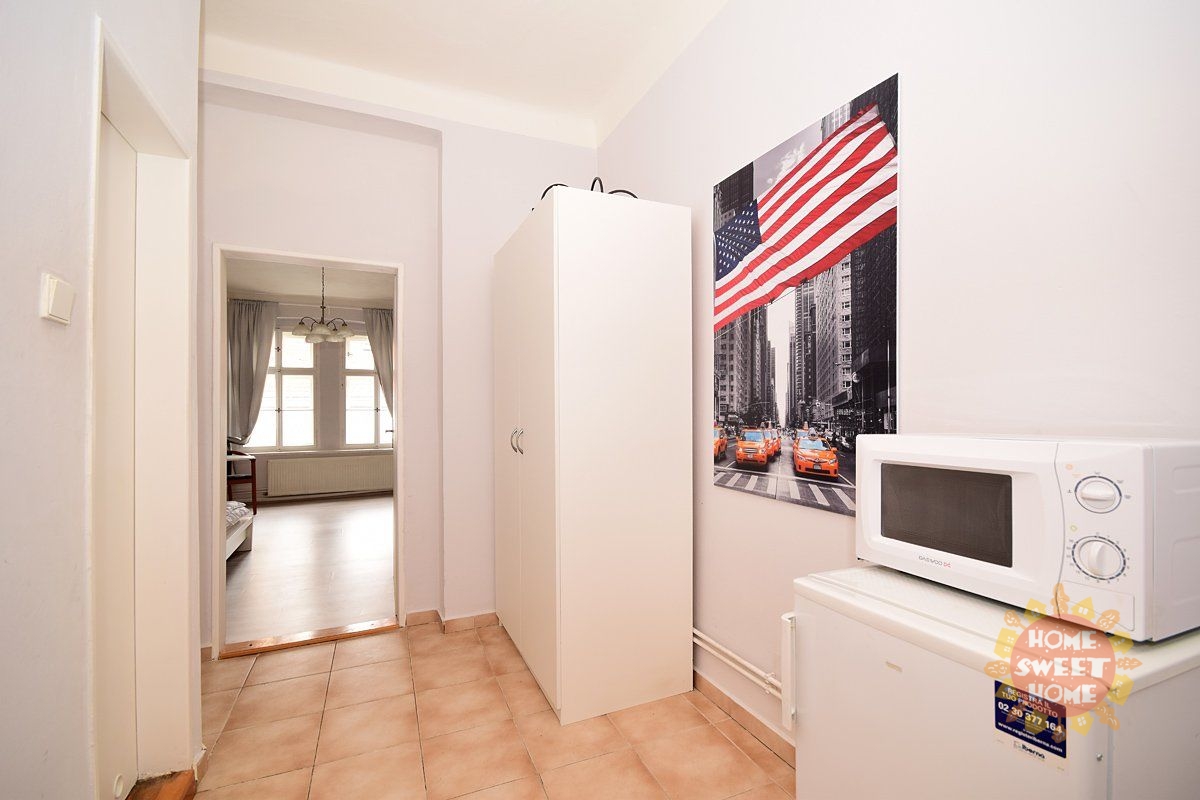 Beautiful fully furnished apartment for rent, ideal for student accommodation, 1+1 (35m2) located on the second floor of a brick building in Cimburkova street, Prague 3, Zizkov. The kitchen has a fridge, microwave and double cooker. The bathroom has a shower, toilet. In the apartment there is one single bed. In the house there is a laundry room and a common terrace. Free internet available.
