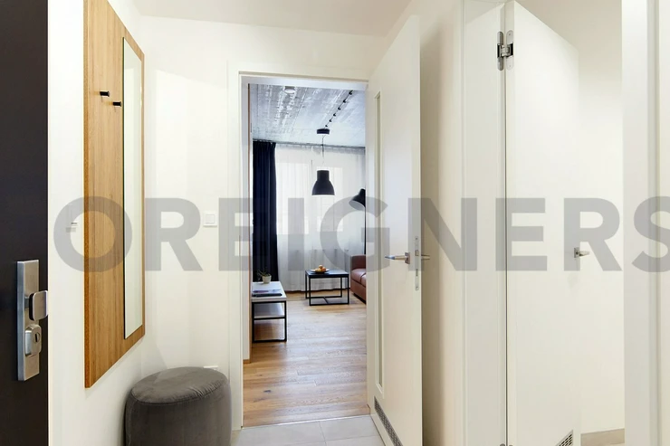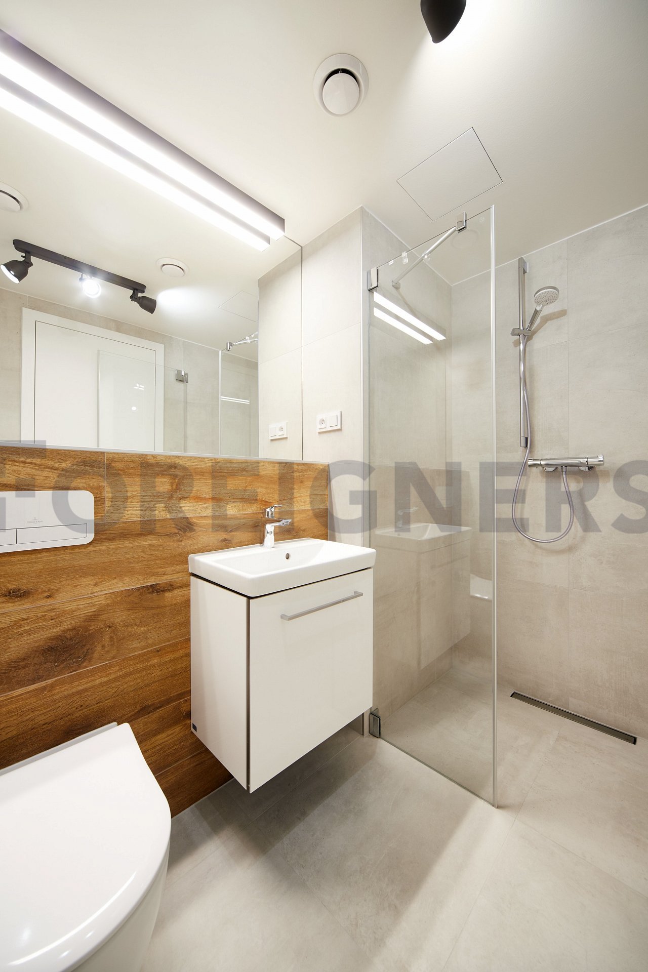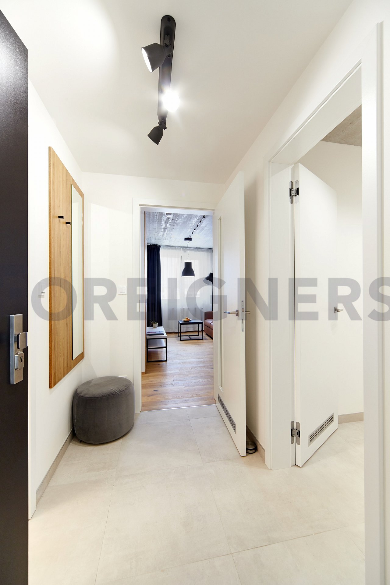 Luxurious 1-bedroom apartment of 34 m2 in modern industrial style on Cejl in Brno. The apartment is fully furnished and soundproof, and also contains an air conditioner and recuperator, which will guarantee that you will breathe fresh air. The building has a high degree of security – there are 18 security cameras in the entire object, entrance gate, and a chip entryway. You can also use underground parking. If you ever need to deal with any issues, there’s a reception desk with a property manager at your service on the first floor.