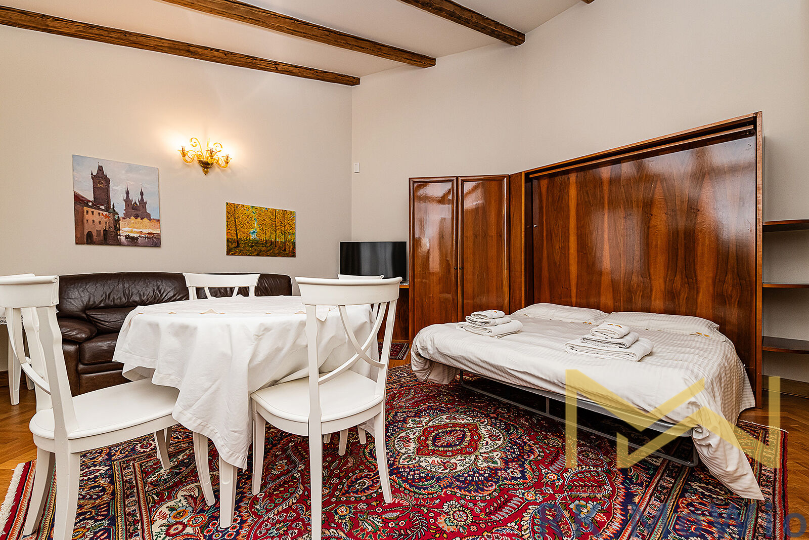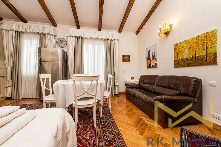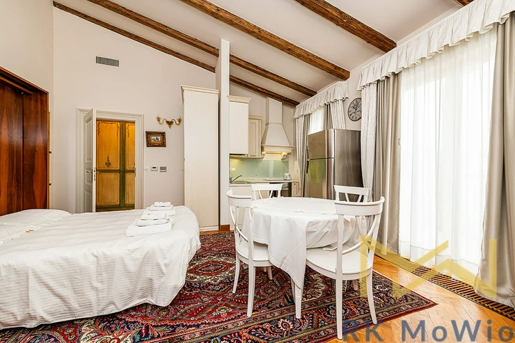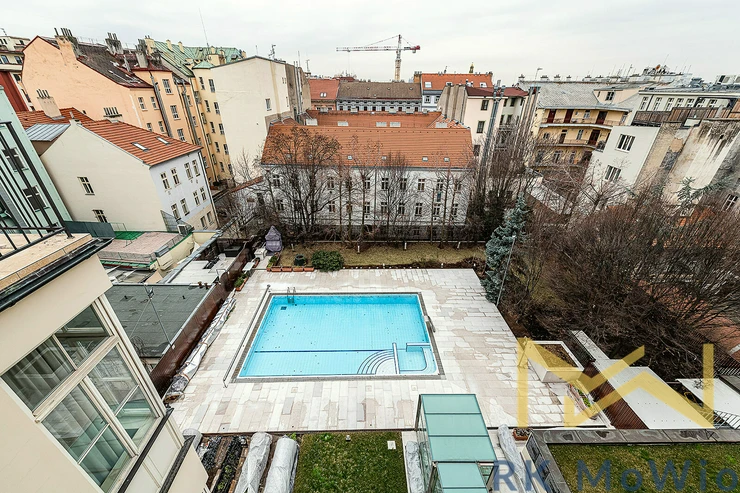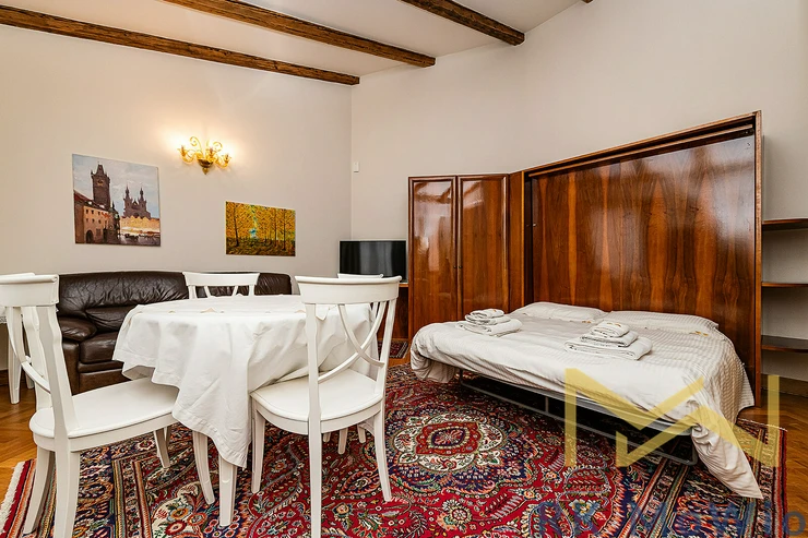 We offer for rent a luxuriously furnished studio apartment No. 20, with a floor area of 38 sqm with a balcony of 11 sqm, located on the 4th floor (5th above-ground floor) of a Neo-Renaissance building with an elevator in Italská Street, in the residential area of Prague 2 – Vinohrady.
