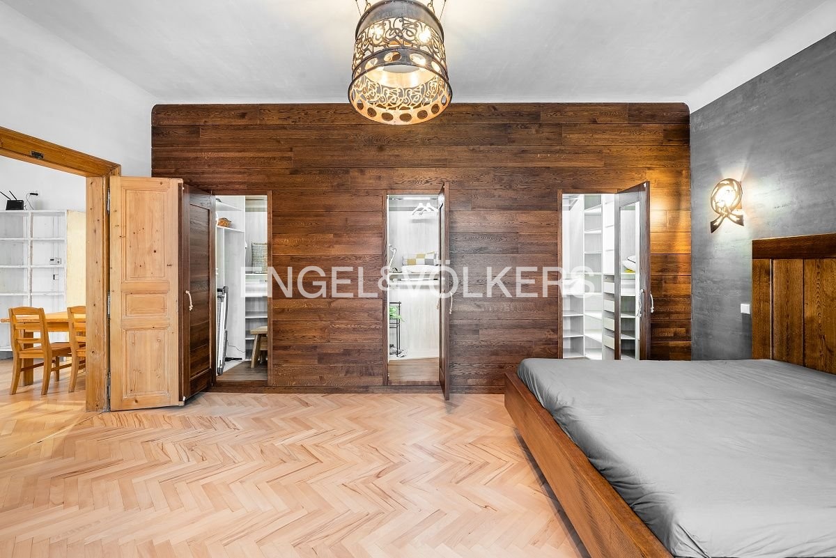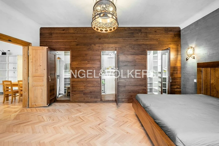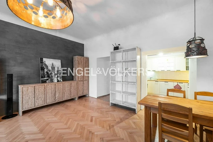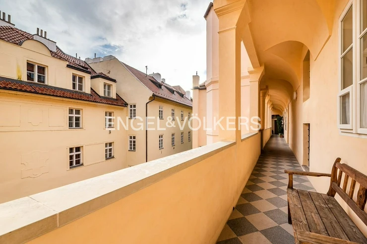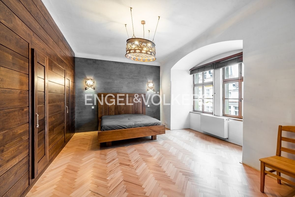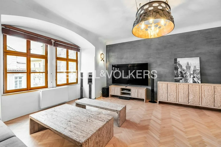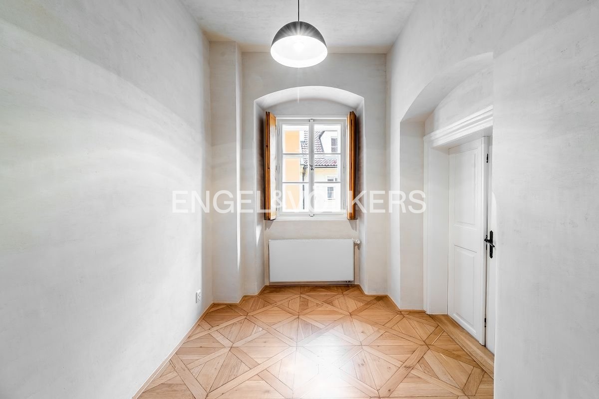 This unique, completely renovated apartment is located on the second floor of one of the oldest residential buildings in Prague, also known as the Saxon House.