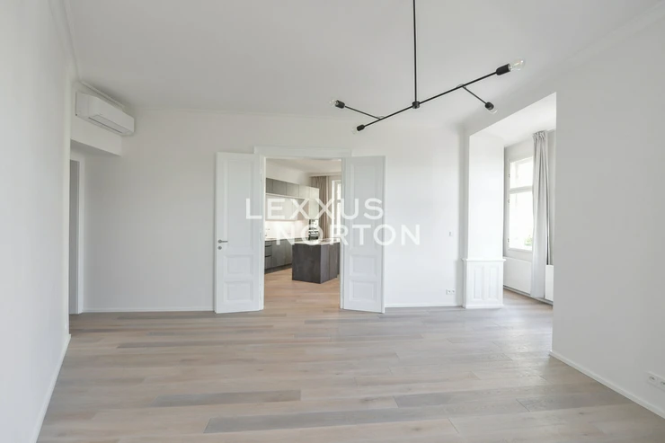 We offer a spacious, partially furnished 2 - bedroom apartment with an area of 138 sqm, located on the 3rd floor of an apartment building. It is located in a lucrative part of Prague's Vinohrady district, right next to Jiřího z Poděbrad Square.The apartment offers an entrance hall, two bedrooms, two bathrooms (with shower, sink, and toilet), a separate toilet, living room, and fully equipped kitchenette. One parking space must be rented for the apartment, located 350 m from the building, at a price of CZK 7,865 including VAT (€323).The apartment is equipped with built-in wardrobes, air conditioning, a wine cooler, a washing machine, and a dryer. The kitchenette is equipped with a dishwasher, oven, stove, refrigerator, and freezer. The flooring consists of high-quality oak floors, and the new windows in the apartment have double glazing.The highly sought-after and lucrative location of Prague's Vinohrady - Jiriho z Podebrad Square - guarantees its residents a carefree life at a high level, thanks to the complete civic amenities on site as well as excellent transport infrastructure (tram and metro station Namesti Jiriho z Podebrad are located in close proximity to the housing). If you like to spend your free time surrounded by greenery, then you will surely be satisfied with a wide choice of several adjacent parks - Svatopluk Cech's Gardens, Mahler's Gardens, Bezrucovy Gardens, Brothers Synku Gardens, Rajska zahrada or Riegrovy Sady. If you prefer to visit shopping centres, there is nothing easier than visiting the nearby Atrium Flora OC. Nearby you can also find several kindergartens and primary schools, playgrounds, pharmacies, post offices, etc.The amount of billable monthly deposits is EUR 125/person/month + electricity and gas (transfer to the tenant).The inquiring client agrees to pay a commission of 1 month's rent plus VAT.If you cannot view the property in person, we also offer you a video tour from the comfort of your home in real time via Messenger, WhatsApp and other communication platforms.