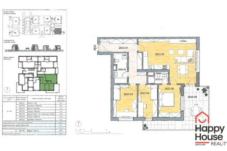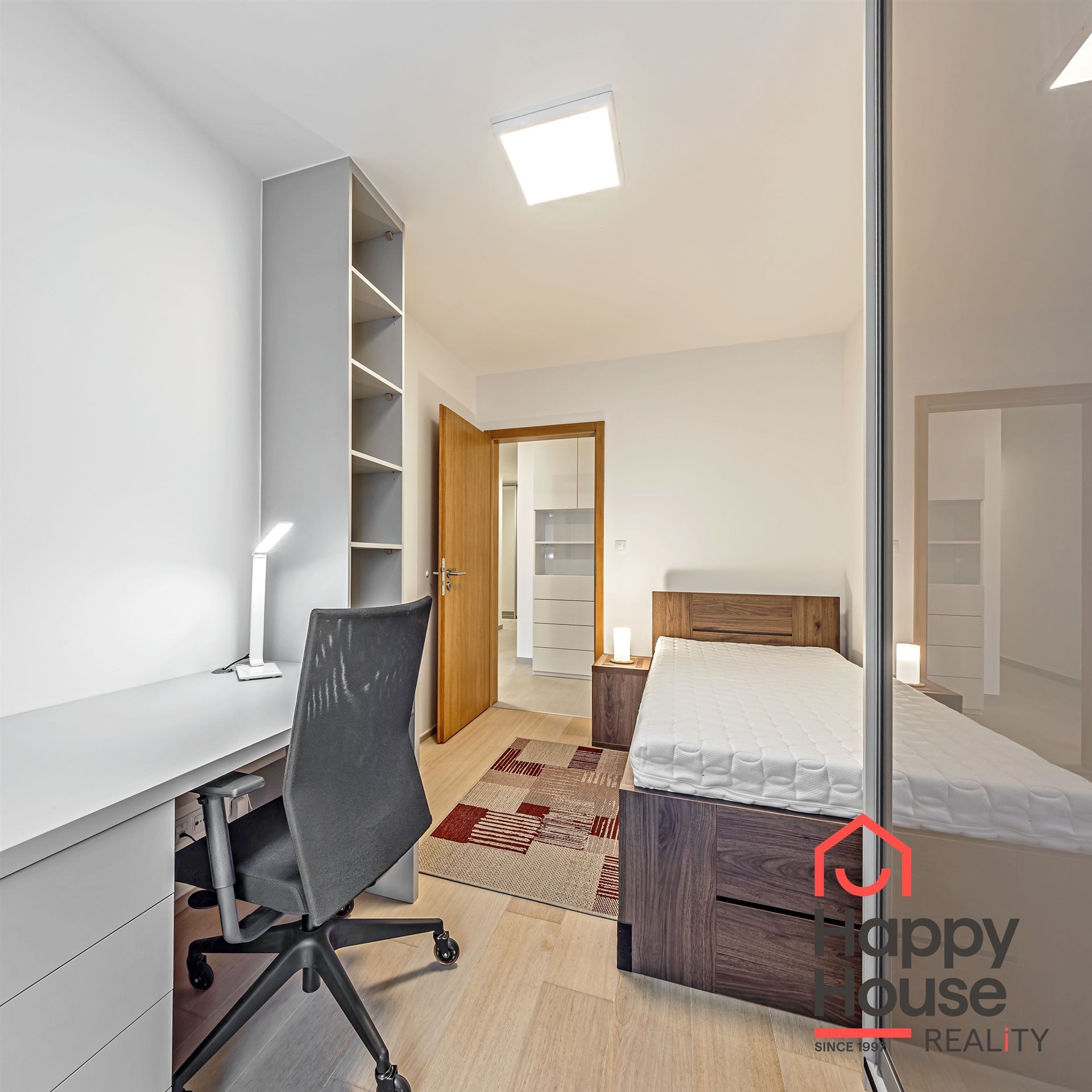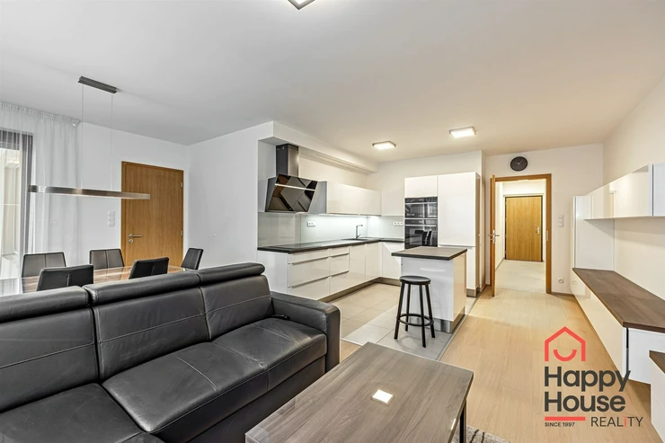We offer a fully furnished 4+kk apartment in the Nové Chabry project with a large corner terrace of 24.6 sqm – the apartment is nearly new, used only by the owner for 9 months since its completion in 2021.