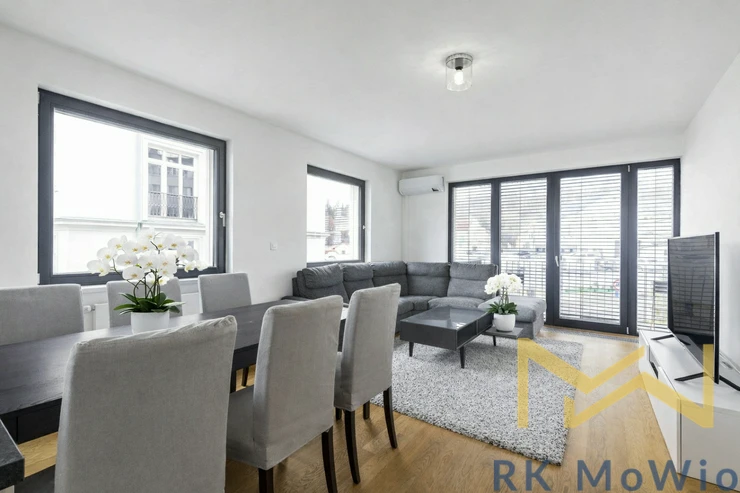 We offer for rent a modern, fully furnished 3-bedroom apartment with a total floor area of 106 sqm and a balcony, situated on the 2nd floor (3rd above-ground floor) of a building with an elevator in the residential complex Veleslavín Vilas, Pod Dvorem Street, Prague 6 – Veleslavín.