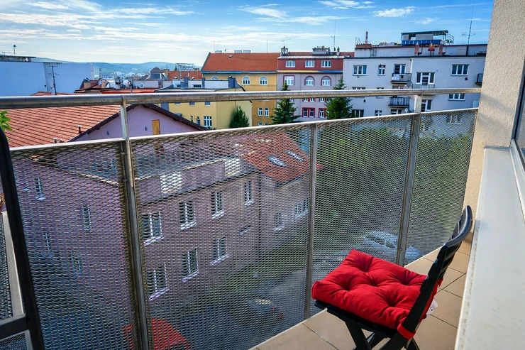 Mendlovo Square is approximately a 5-minute walk away or just one tram stop. The city center can be reached within about 10 minutes by public transport.