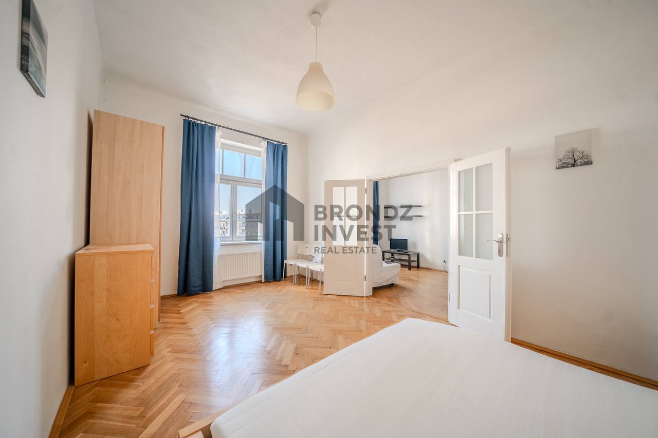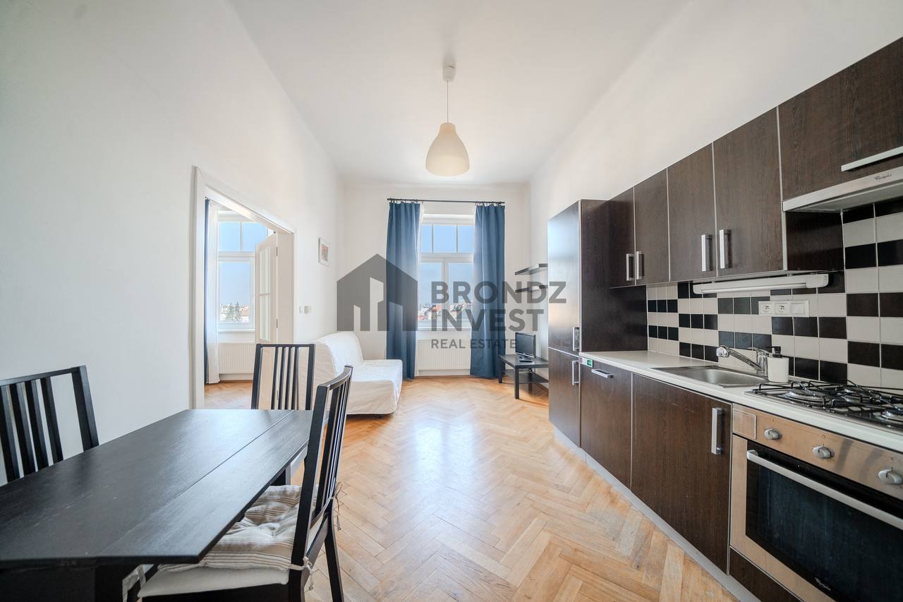 We offer for rent a spacious 2+kk apartment with a size of 55 m² near Jiřího z Poděbrad Square.