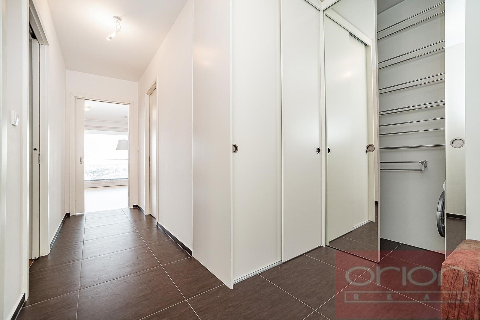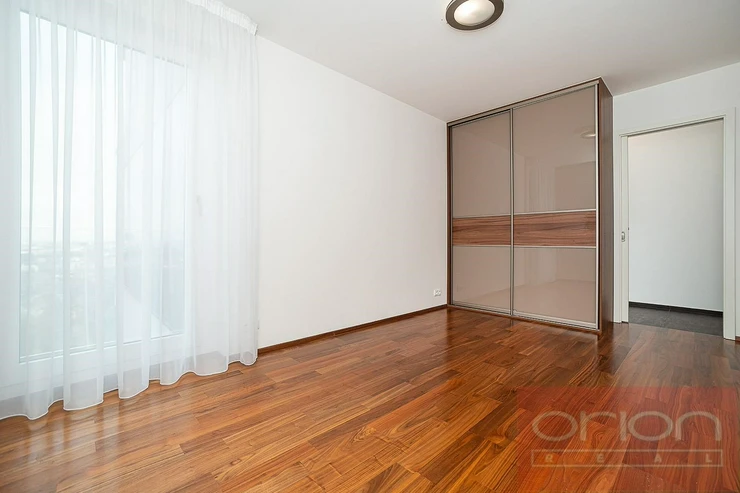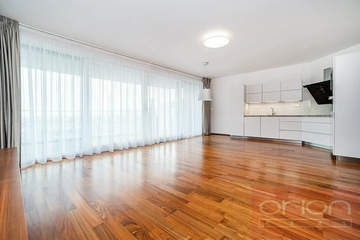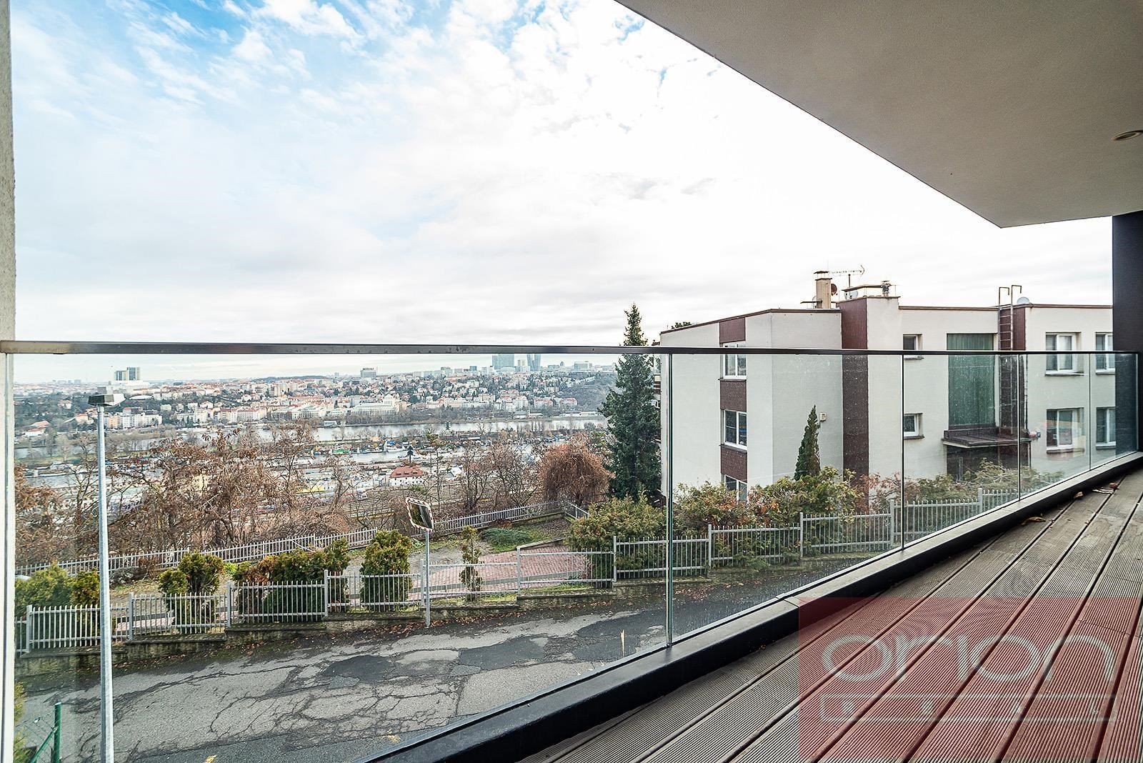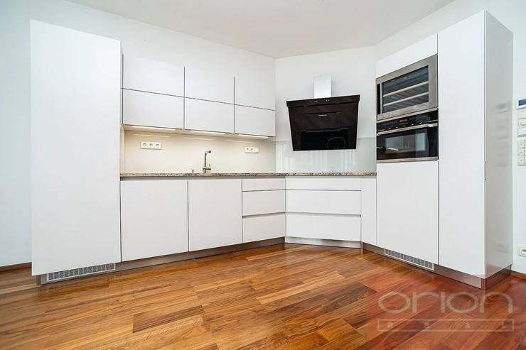 We offer for rent a spacious two bedroom - two bathroom apartment (96sqm) with a terrace (6sqm) located on the 1st floor of the modern residential building Villa City View in Prague 5 - Smíchov. The apartment has a flat access and offers an entrance hall with storage space, a large living room with a dining area and a fully fitted kitchen and access to the terrace with a beautiful view of the city, 2 bedrooms, of which the master bedroom has en-suite shower bathroom with a toilet, as well as the second bathroom with a bathtub and toilet. The bedrooms have built-in wardrobes, the living room is furnished with a designer shelving system. The modern kitchen is equipped with appliances, a Küppersbusch hob with the Vok system, a fridge with freezer, a dishwasher and an oven. The floors are high-quality parquets and tiles. The apartment is equipped with external blinds in all rooms, has a security door, an alarm and includes one garage space in the underground garage, one outdoor parking space and a large storage on the basement. The house is situated in a quiet area of Prague 5 - Smíchov, offering plenty of privacy and pleasant living. Excellent connections by car and public transport to the Anděl shopping centre, where there is a metro and tram station, to the city centre, to Václav Havel Airport, to international schools. Available from March 1. 2026, viewings by request.