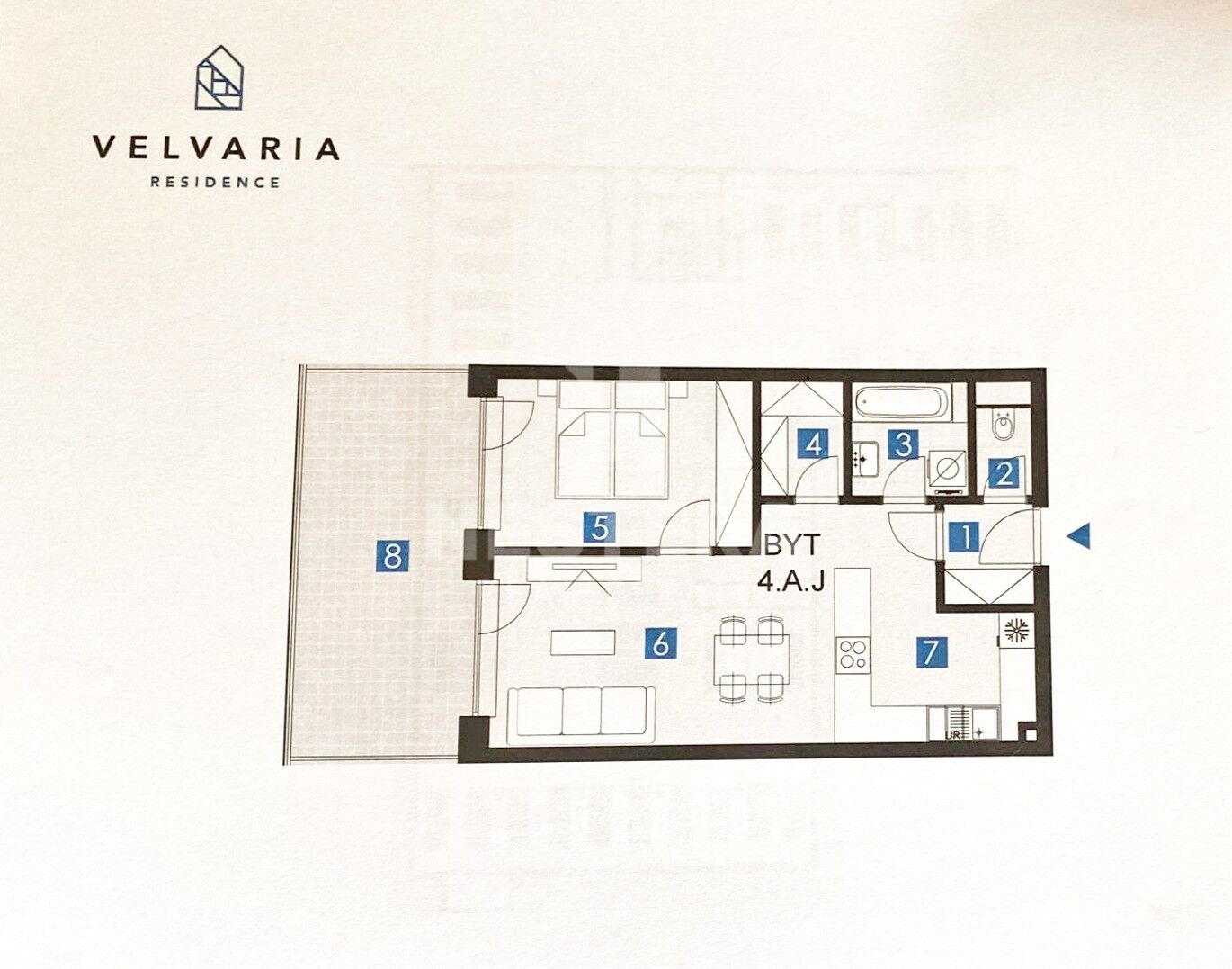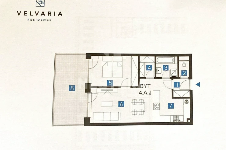 Exclusive 2+kk apartment with a terrace and a total area of 72 m2, located on the fourth floor of a new building in the popular Residence Velvaria project for rent.