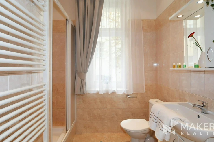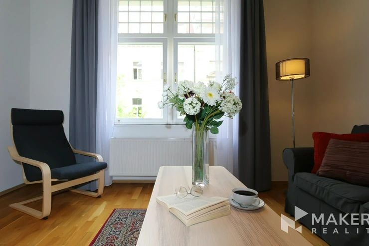 We are pleased to offer for short or long term rent a stylish bright apartment 2 + kk in a house after reconstruction with a total area of 48m2, located on the 3rd floor in a desirable location in Prague 2 - Vinohrady, Na Kozačce street.