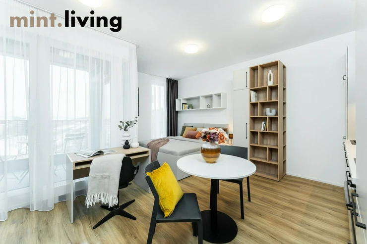 The unit has a spacious room with a kitchenette including all necessary appliances. Enjoy good night sleep in a comfortable bed with a quality mattress (we offer two possible bedroom arangements - a double bed or two separate beds for roommates). In the apartment you will also find a modern bathroom with a shower and a washing machine Other perks of the apartment include plenty of cleverly designed storage space and a TV. You will also appreciate the sunny loggia with seating area, especially during the summer months.