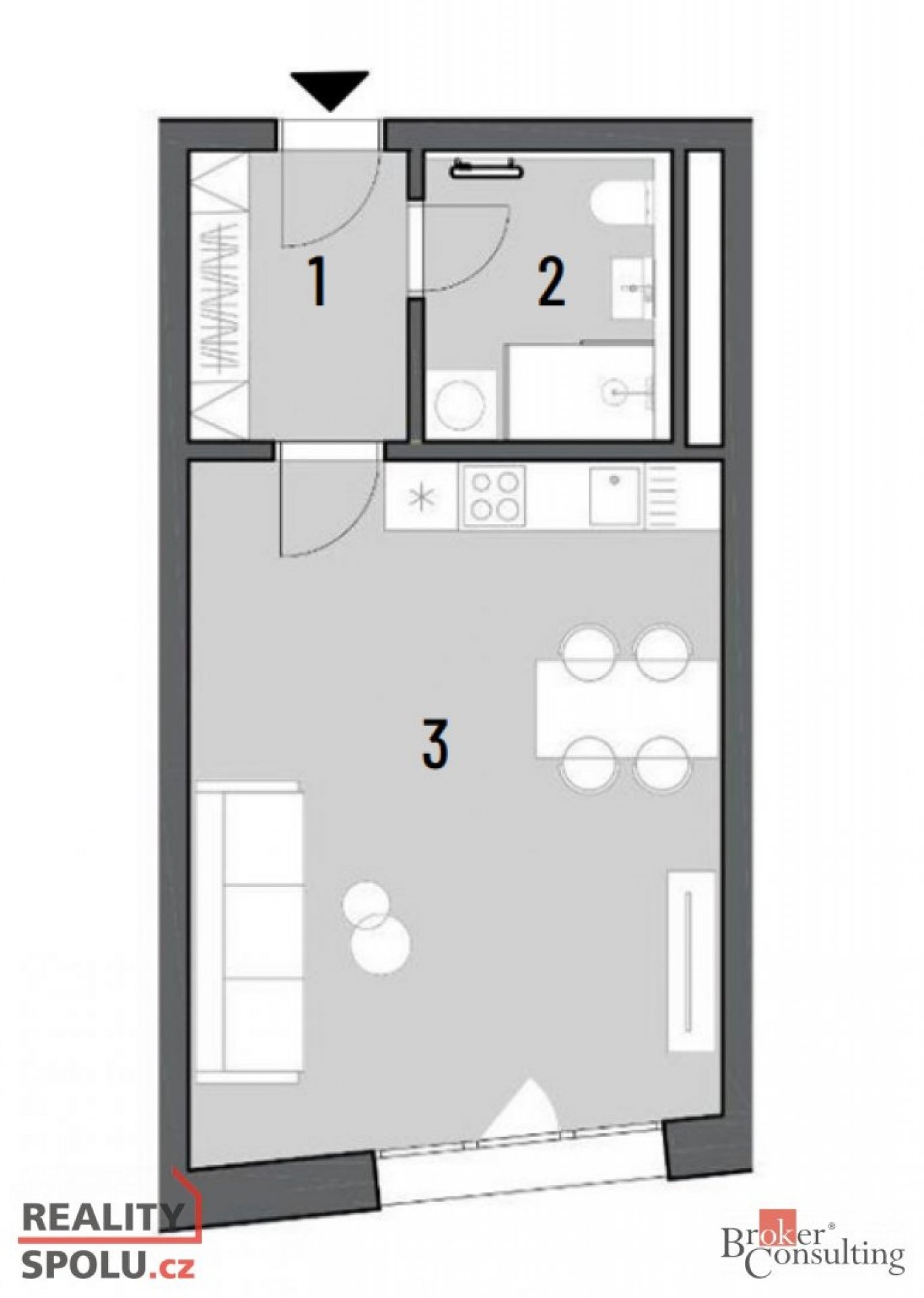 Pronájem nového bytu 1+kk – Pekárenský dvůr, Brno – Bratislavská