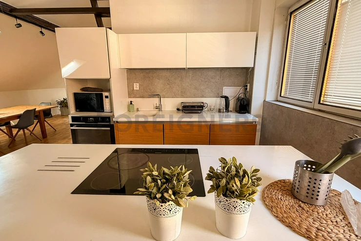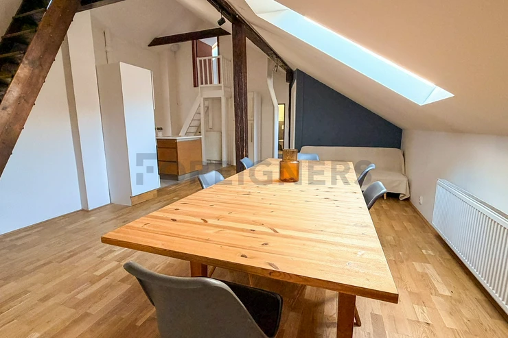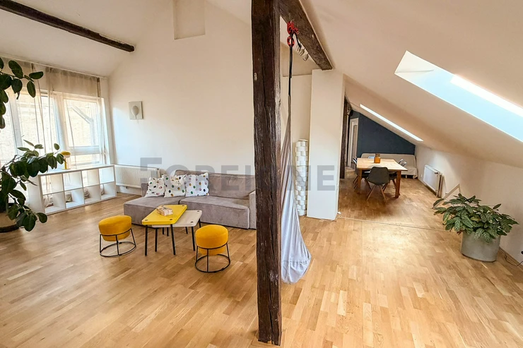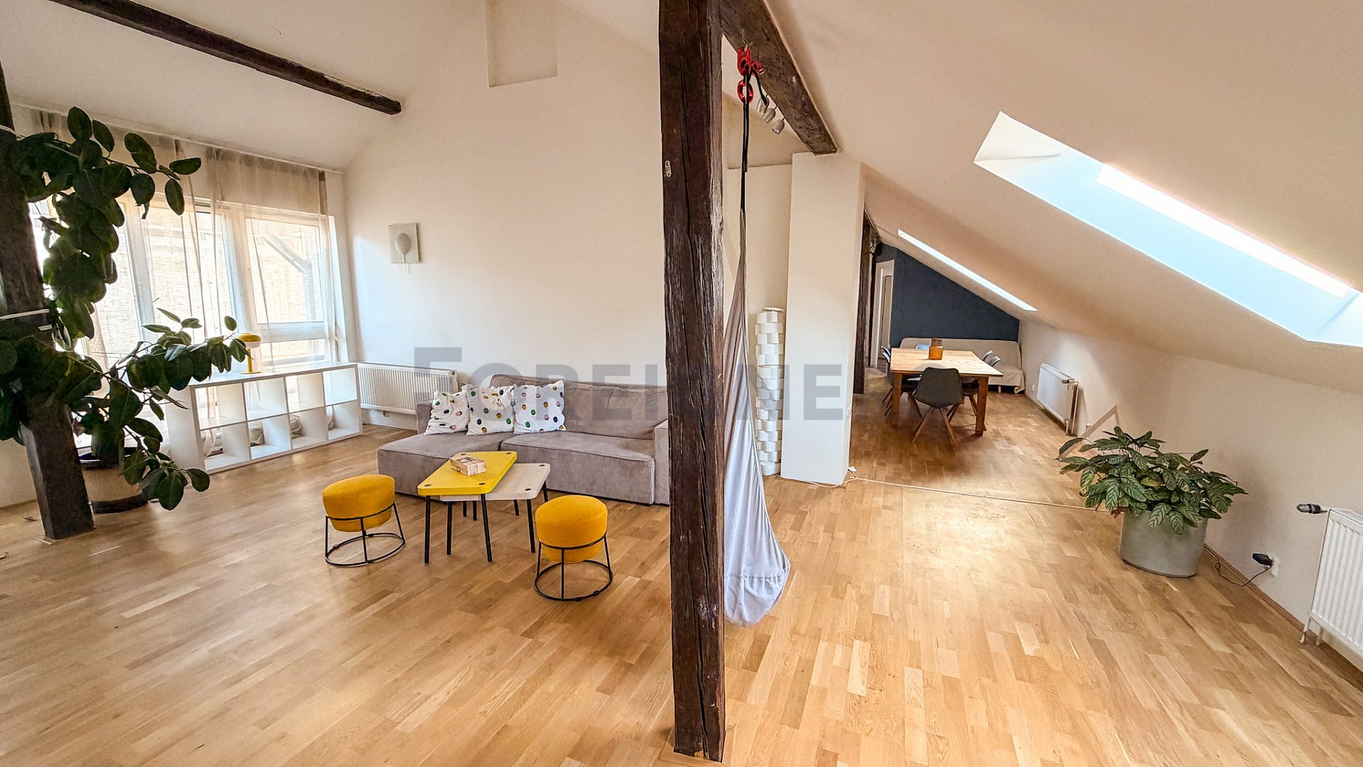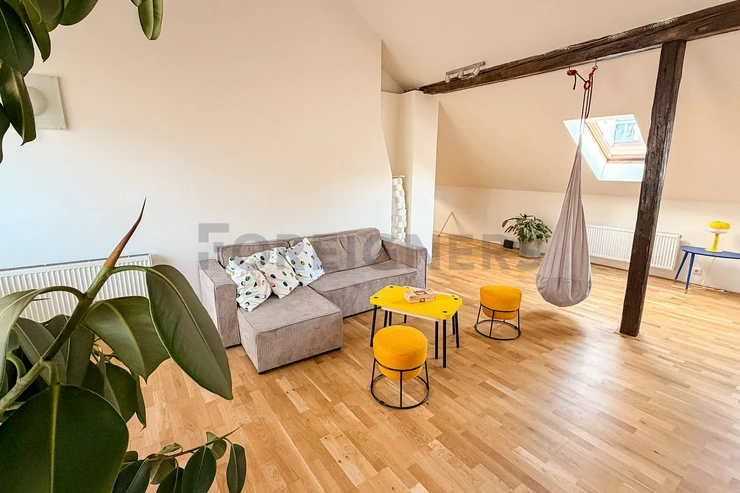 We offer for rent an exceptional attic apartment with a total area of approximately 140 m², which will impress with its airiness, light and above-standard space. The apartment is suitable for both comfortable living and a combination of living and working.