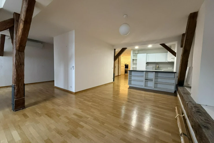 We offer for rent a 2+kk apartment with a total area of 89 m, located in the attractive district of Prague 8 Karlín. The apartment is offered unfurnished. The layout is designed as an open space, with the sleeping area not separated by doors from the living area, giving the apartment an airy, loft-style character.