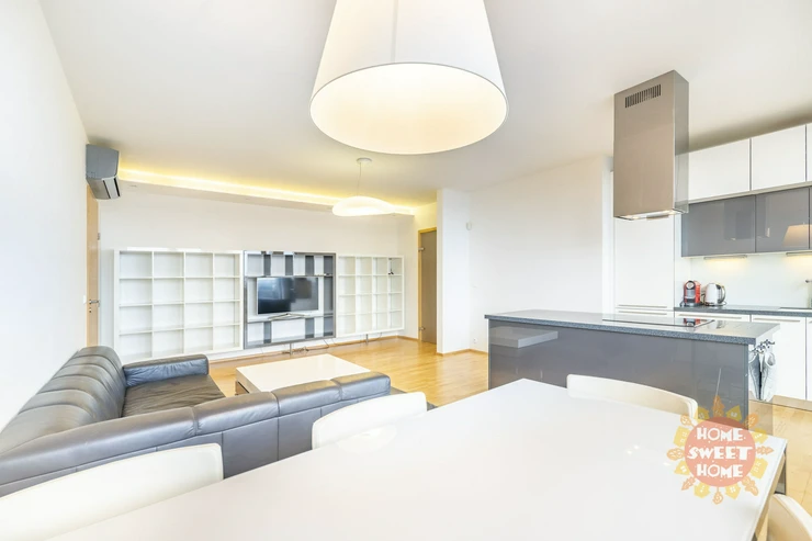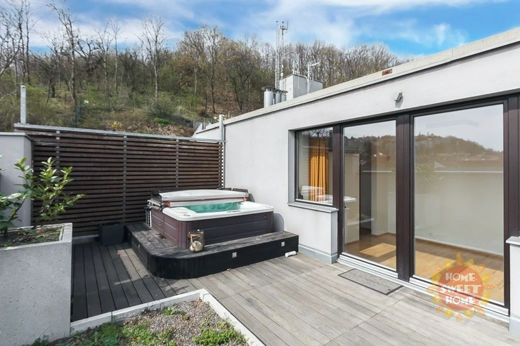 There are high-quality materials - laminate flooring, soundproof large French windows provide plenty of light. A whirlpool is available on the terrace. Garage is included. Modern, high-quality housing in a popular and accessible location of Prague 5 - Smíchov. Close to the house is a park offering opportunities for relaxation and walks in the countryside, complete amenities - near the business center, fitness center, cinema, restaurants, cafes, kindergartens and primary schools . Excellent transport - tram stop directly in front of the house, around the corner from the bus station , metro B nearby.