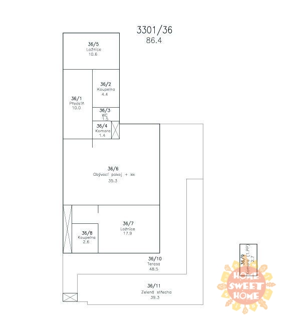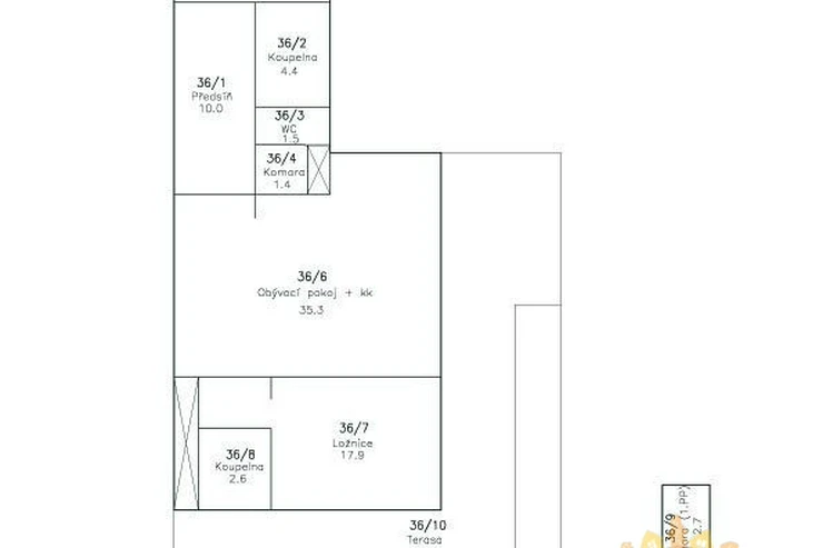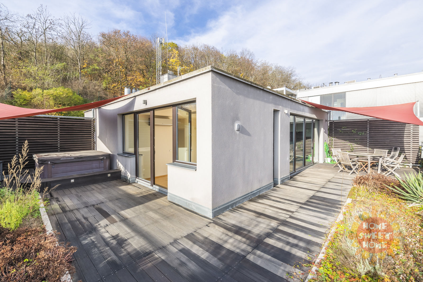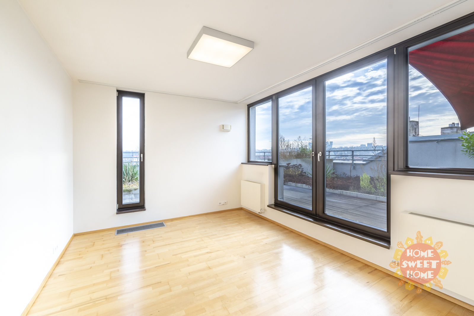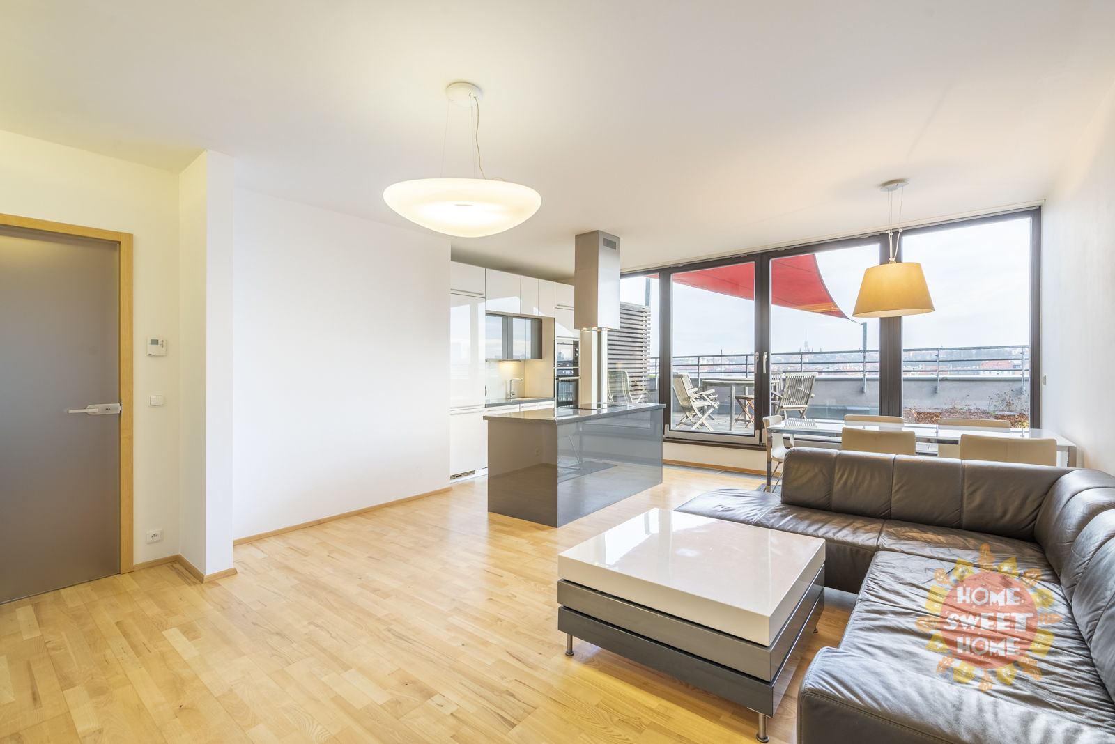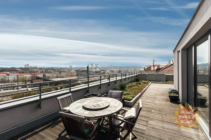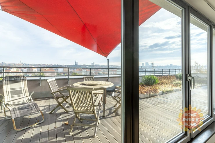 We are offer a unique modern apartment 3 + kk with large terrace. The apartment consists of the following rooms and accessories: hallway, two bedrooms, living room with kitchenette, two bathrooms (1x with bath and 1x with shower), toilets, chambers and terrace.