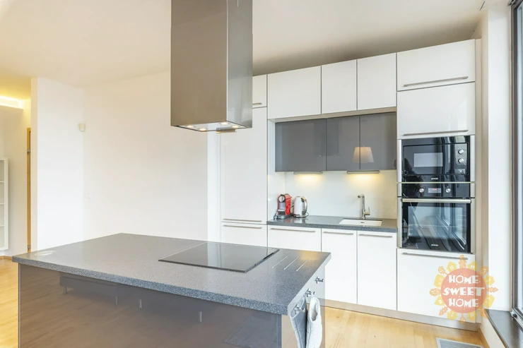 The apartment is located on the 6th floor in the recently built a new building , near Anděl , Radlická street . Comfortable, partly furnished apartment offers stylish living. Superb kitchen is fully equipped with integrated appliances - fridge , freezer , hob, oven, dishwasher. Bathroom with bath, shower, wc. There is also a washing machine .