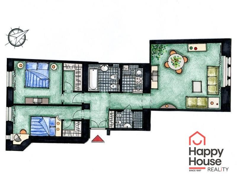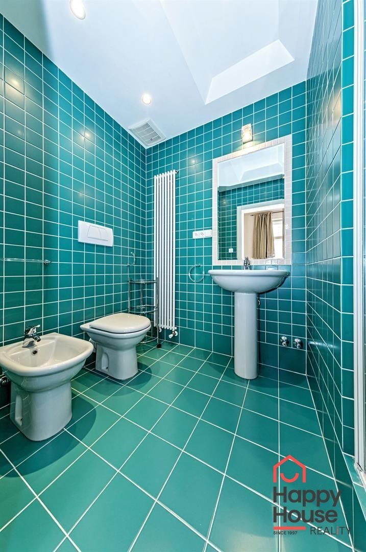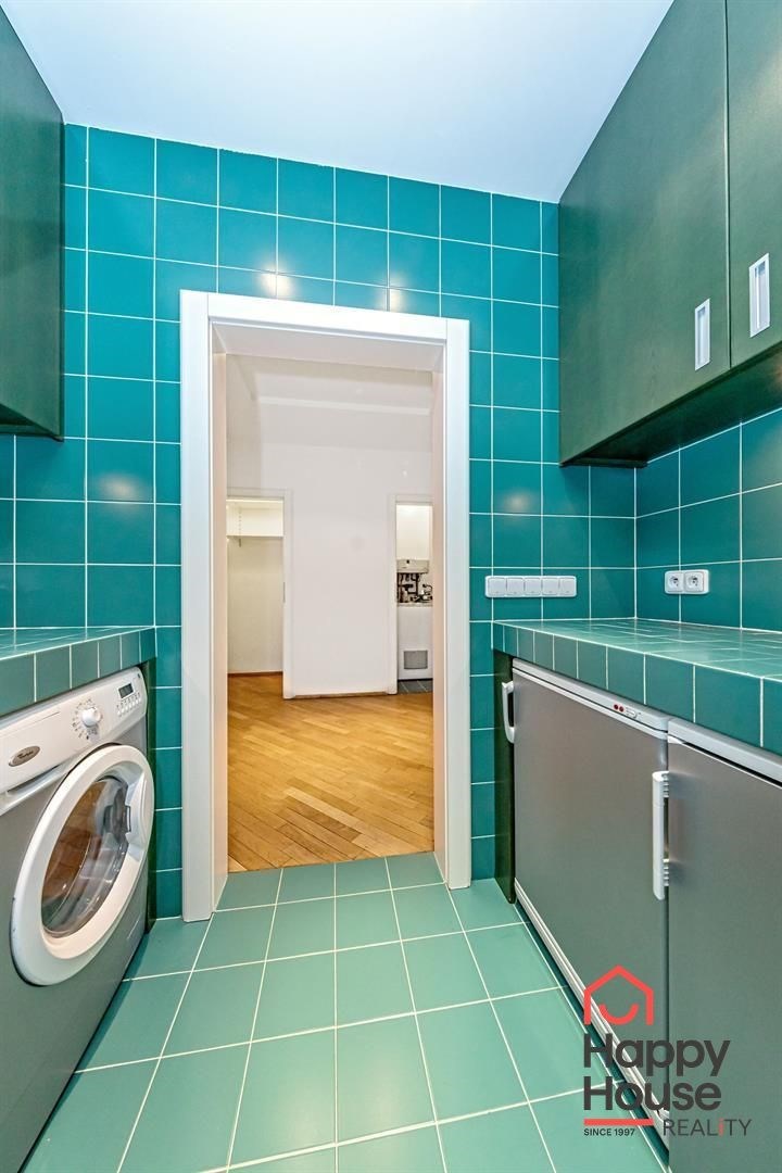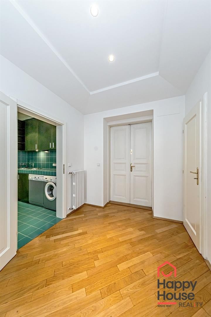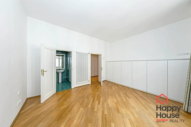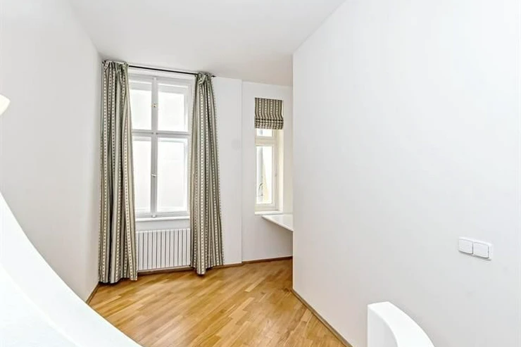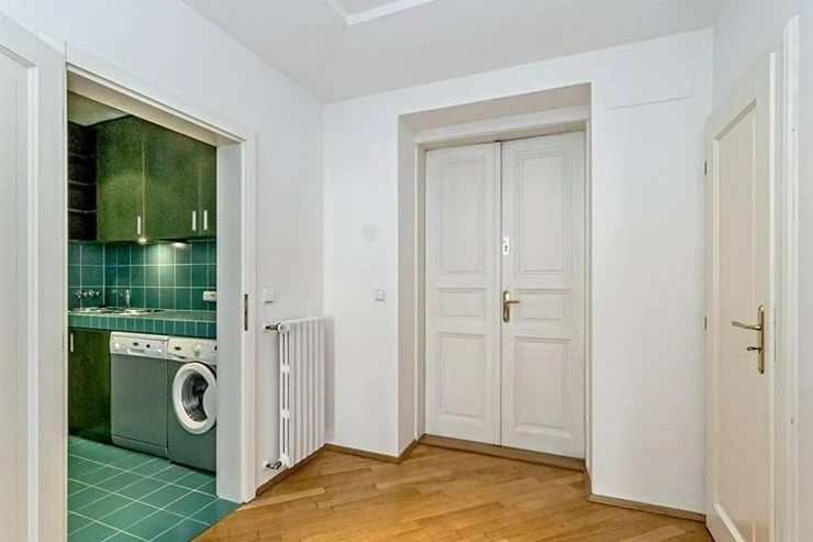 We rent a beautiful, fully furnished two-bedroom apartment on the 3rd floor of a brick house with an elevator in a prestigious location of Prague 2 in Nové Město. Entrance hall and hallway, living room, kitchen, two bedrooms, each with a dressing room and two bathrooms. All rooms are separate. Line with built-in appliances, refrigerator, freezer, gas hob, electric oven, dishwasher, extractor hood and washing machine. One bathroom with a bathtub, toilet and bidet, the other with a shower, toilet and bidet. Internet, SAT TV available. Parquet, tiles. Gas boiler in the apartment. Parking on the street - zones.